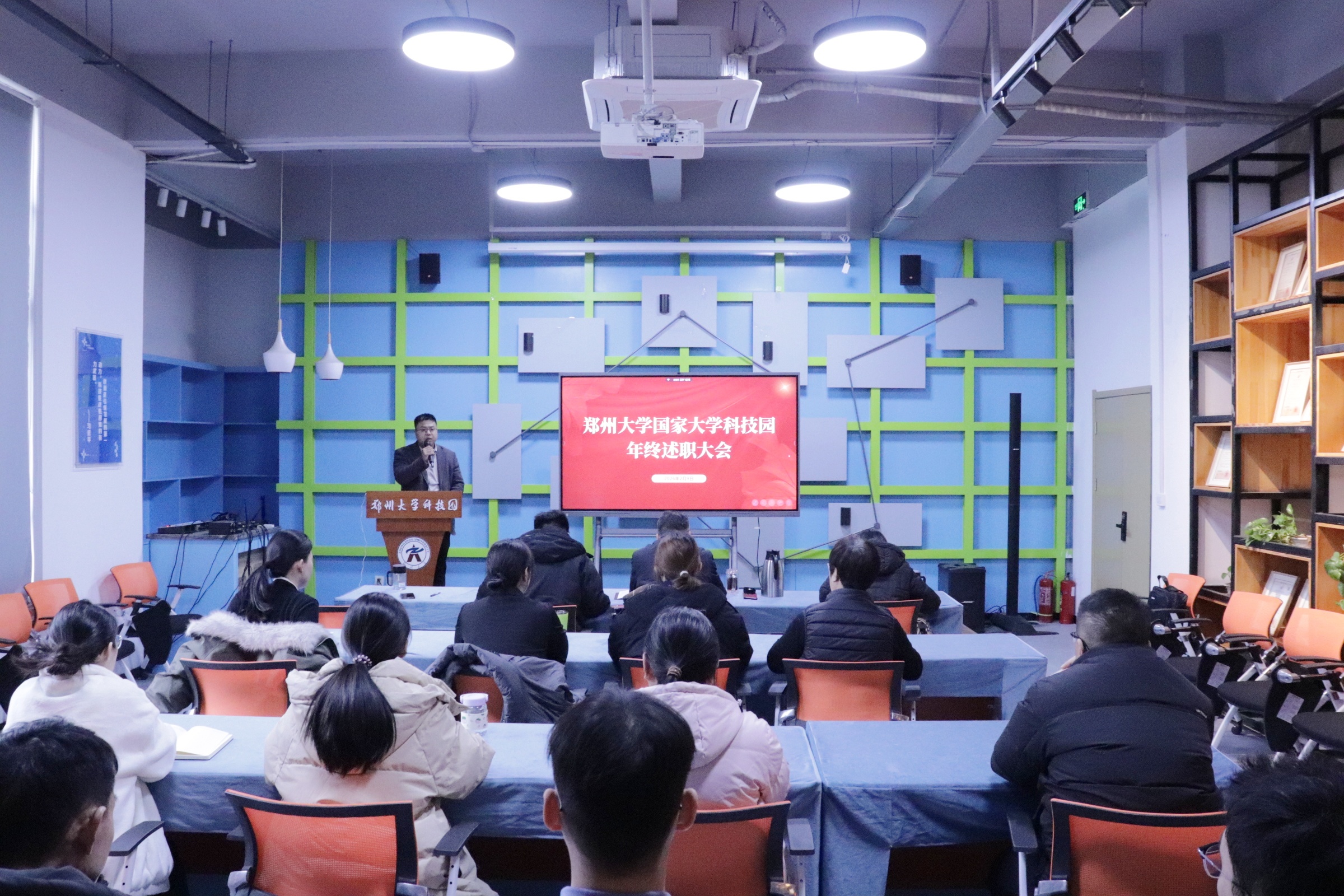 岁序更替,华章日新;凝心聚力,逐梦前行。为全面总结2025年工作成效,系统部署2026年发展任务,进一步统一思想、凝聚共识、鼓舞干劲,2月9日,郑州大学科技园召开2025年年终述职大会暨2026年工作部署大会。大学科技园建设管理中心副主任(主持工作)、科学技术研究院副院长、科技园公司总经理张文良,管理中心副主任裴东杰,管理中心副主任、科学技术研究院科技转化中心主任许觅婷出席会议,会议由科技园公司副总经理庆捷主持,全体员工参会。
