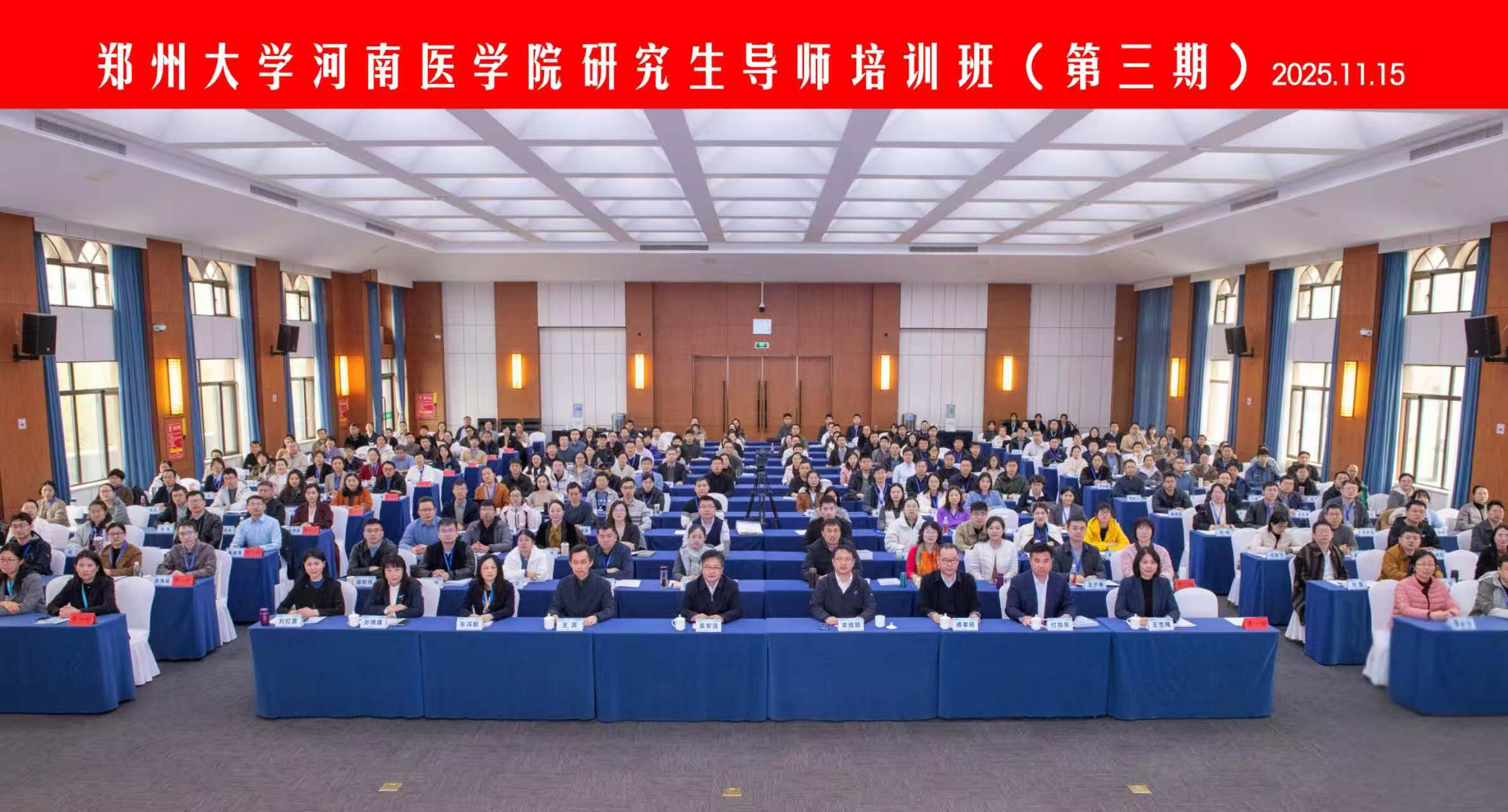2025年11月15日至16日,由郑州大学河南医学院主办、省医临床医学院承办的“郑州大学研究生导师培训班(第三期)”在河南省招生考试学术交流中心成功举办。本次培训班以“数智赋能,强师铸魂”为主题,聚焦新时代医学研究生教育核心需求,通过专题授课、分组研讨、成果交流等多元形式,为导师队伍赋能提质。学校200余位新任医学研究生导师参训,共同探索医学人才培养新路径。河南医学院党委副书记吴军浩、副院长刘康栋,郑州大学纪委副书记、河南医学院纪委书记王宾,河南医学院党政办公室主任傅聿铭、医学研究生办公室主任张鸿敏、省医临床医学院执行院长付旭东等领导参加活动。