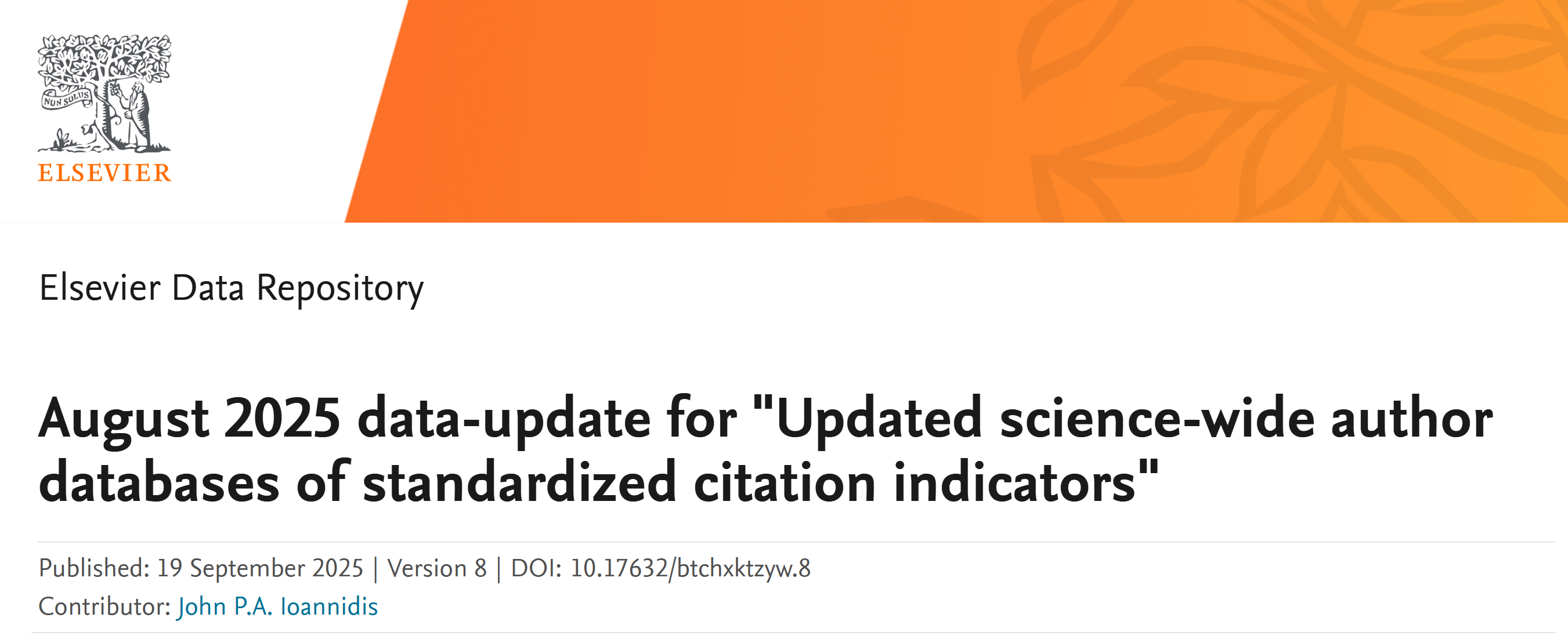 官方发布榜单链接:https://elsevier.digitalcommonsdata.com/datasets/btchxktzyw/8