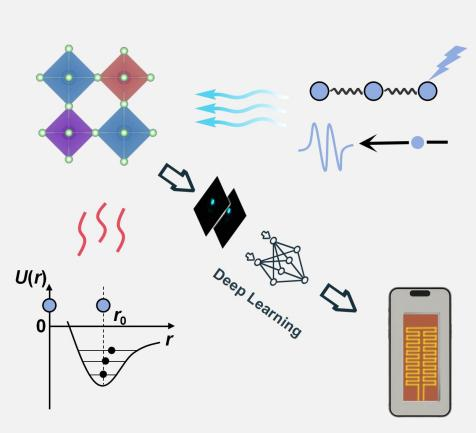 无铅金属卤化物中的自陷激子(STE)为发展下一代光学测温技术提供了强大的工具库,然而,如何调控其热致脱陷动力学以优化发光热响应、实现高性能应用,仍然是一个挑战。本研究基于Sb3+/Er3+掺杂双钙钛矿提出了一种便携式智能比色测温平台,将色相–饱和度–明度(HSV)颜色编码与深度学习相结合,实现了高精度热成像。通过对三价阳离子位点的调控,可以改变尺寸相关的晶格硬度,从而增强电子–声子耦合,并降低Sb3+诱导STE脱陷的热激活能垒。在铟基双钙钛矿中,高键离子性激发了显著的四阶声子非谐性,这不仅引起了强烈的晶格热膨胀,还同时降低了键力常数,最终实现了45.08 meV的超低热激活能,并获得了最强的热猝灭效应。进一步,我们引入Er3+作为光谱稳定的发光中心来诱导灵敏的热致变色行为,并提出了一种具备高颜色识别能力的HSV比色热成像方法。为消除环境光照与手机拍摄角度引入的伪影,我们开发了基于YOLO11的深度学习算法,可直接从微电子器件的原始荧光图像中端到端地解码温度信息,并实现了92.20%的高准确率。