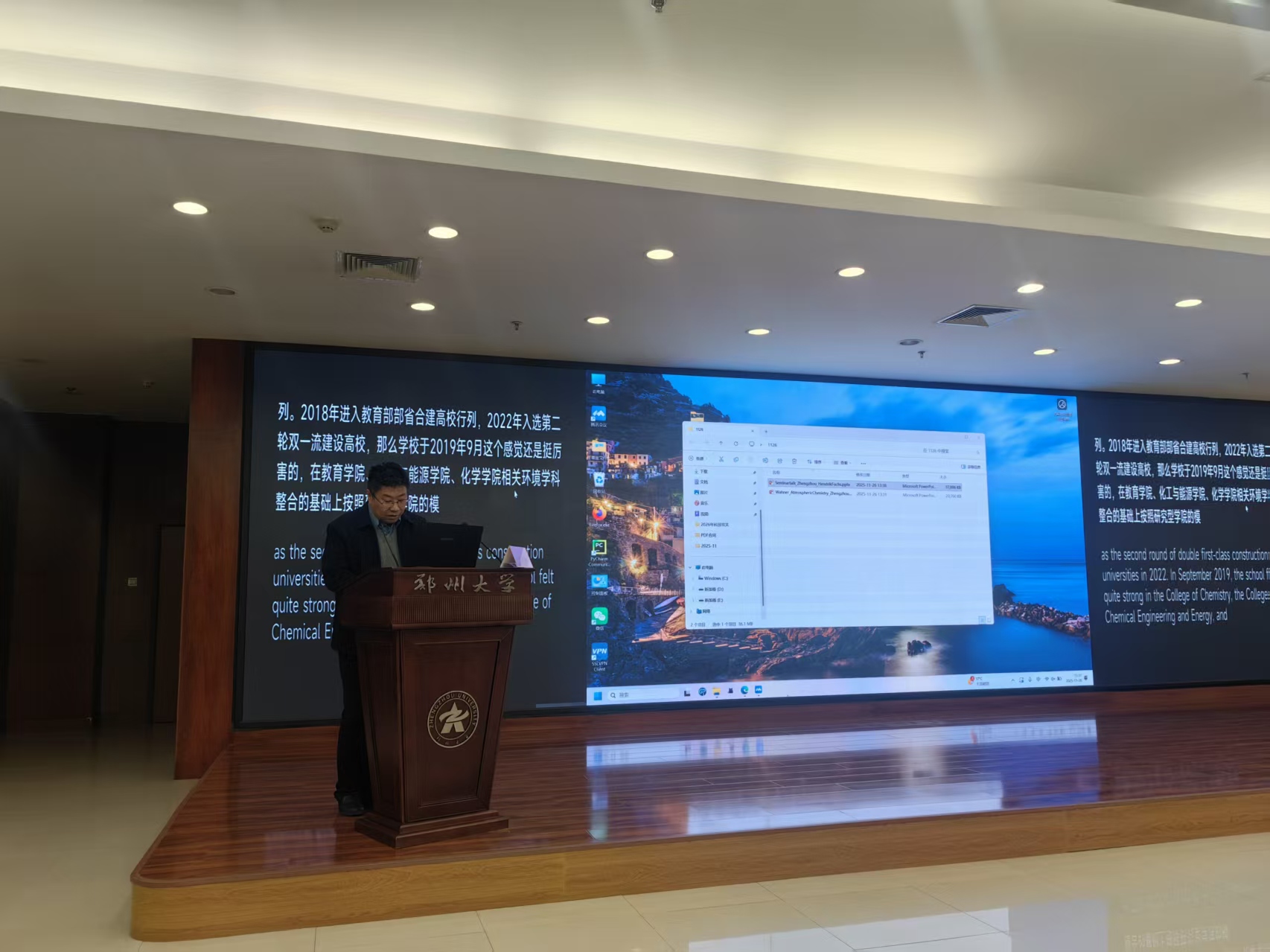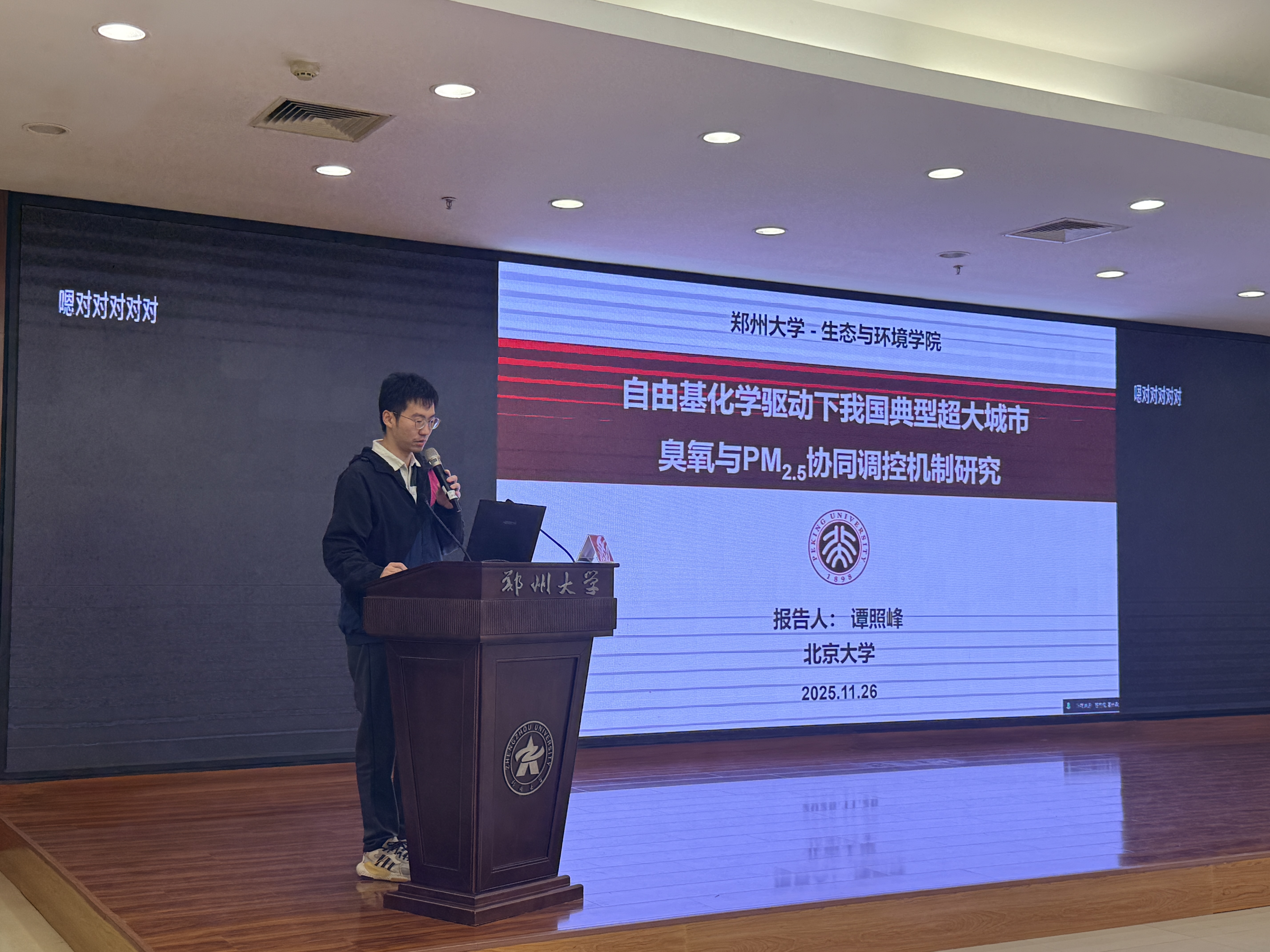 2025年11月26日,郑州大学生态与环境学院举办“大气氧化性与PM2.5和臭氧污染协同防控”前沿研讨会。会议由学院大气环境学科带头人张瑞芹教授主持,邀请德国于利希研究中心Andreas Wahner教授、Hendrik Fuchs教授、Anna Novelli研究员及北京大学谭照峰研究员,围绕自由基化学、监测、烟雾箱模拟及PM2.5与臭氧协同调控作专题报告,并与师生深度交流。