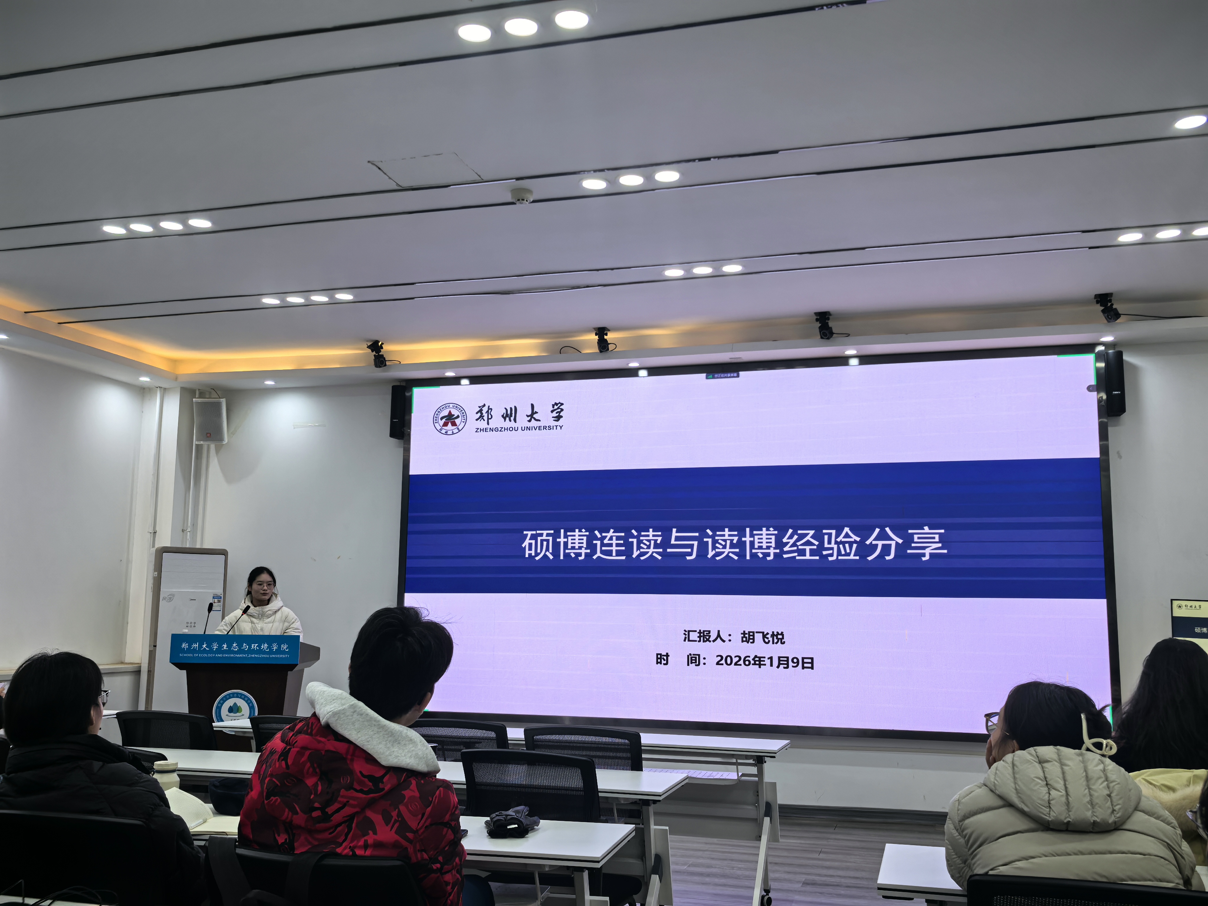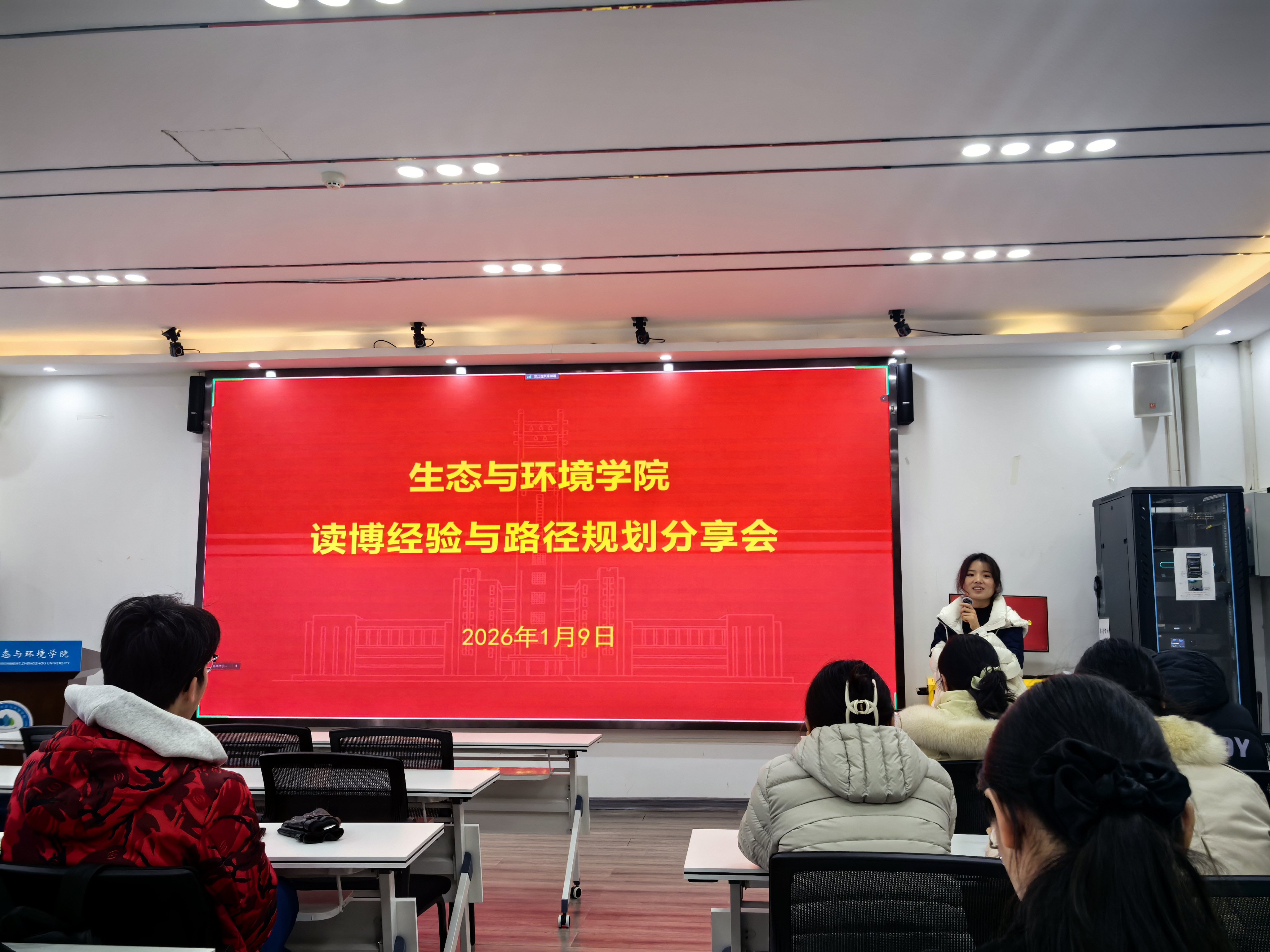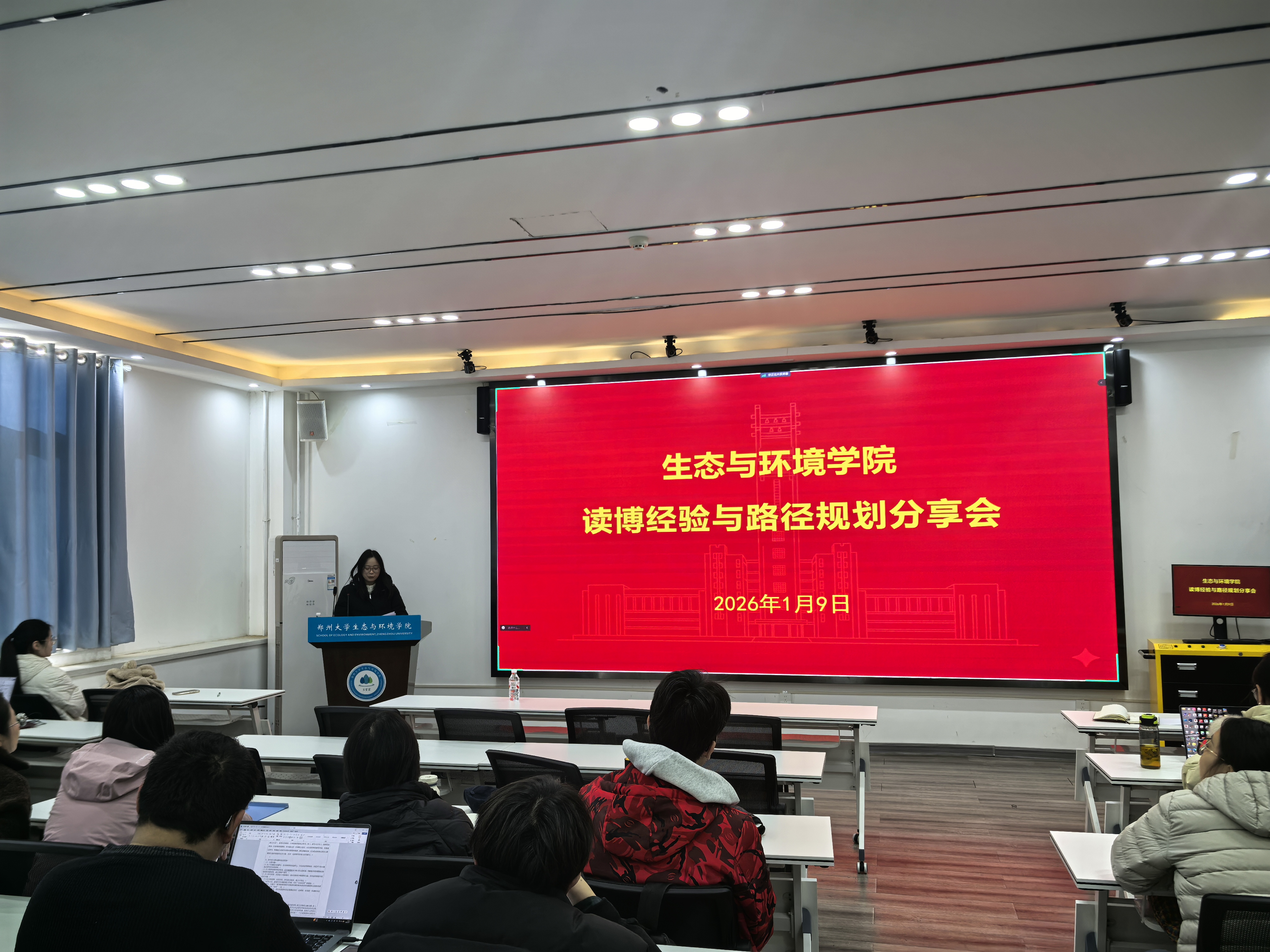 2026年1月9日下午,生态与环境学院于102报告厅成功举办读博经验与路径规划分享会。会议邀请到外校读博深造、本校攻读博士学位及硕博连读的三位优秀博士生代表进行经验交流,旨在助力研究生明确学业发展方向,做好博士申请规划。会议由学院研究生工作高级主管侯姣主持。