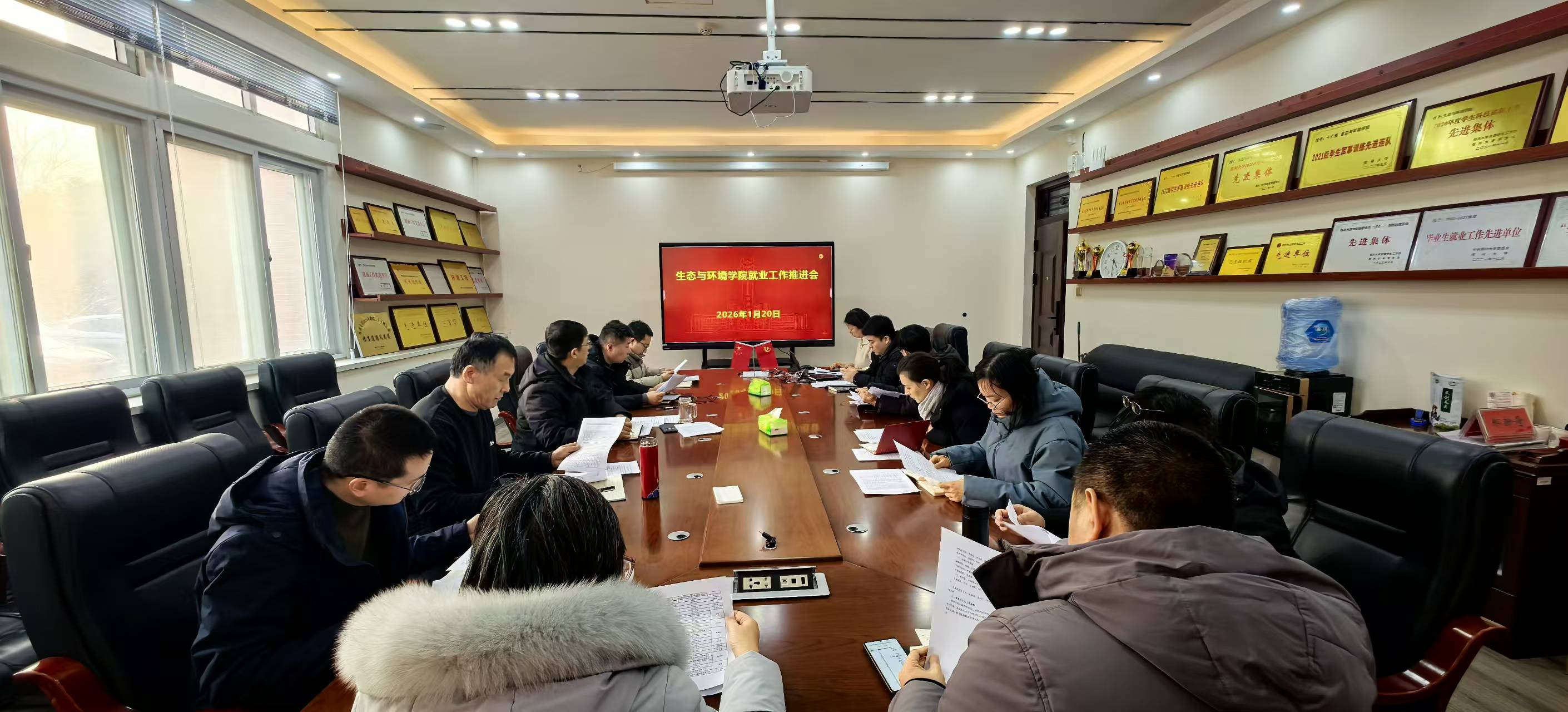 为深入贯彻落实河南省普通高校毕业生就业创业工作视频会议精神,扎实推进2026届毕业生“寒假促就业暖心行动”,1月20日下午,生态与环境学院在环保馆112会议室召开2026届毕业生就业工作推进会。学院党委书记张彤军主持会议,执行院长、党委副书记窦明,党委副书记、纪委书记冯瑞晓,副院长郭丰启、张伟、赵楠,副处级组织员刘婧宜,各系(中心)主任、党支部书记、毕业生辅导员、本科毕业生班主任参加会议,共同分析当前就业形势,部署下一阶段重点任务。