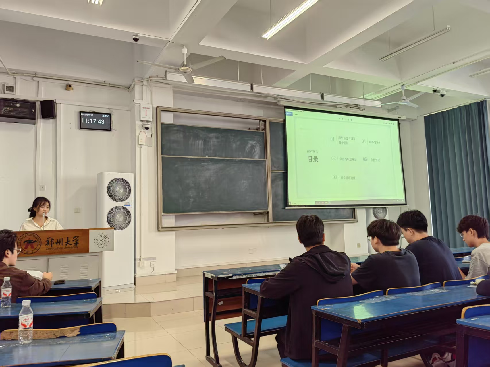 研究生辅导员侯姣就在校期间的注意事项作了全面说明。她重点强调了学术成果保护、信息安全、意识形态安全等重要议题,提醒同学们牢固树立国家安全意识,自觉抵制虚假信息,保持政治清醒,坚决做到不传谣、不信谣。同时,她也希望新生注重个人身心健康,增强自我保护能力,顺利度过充实而有序的研究生生活。