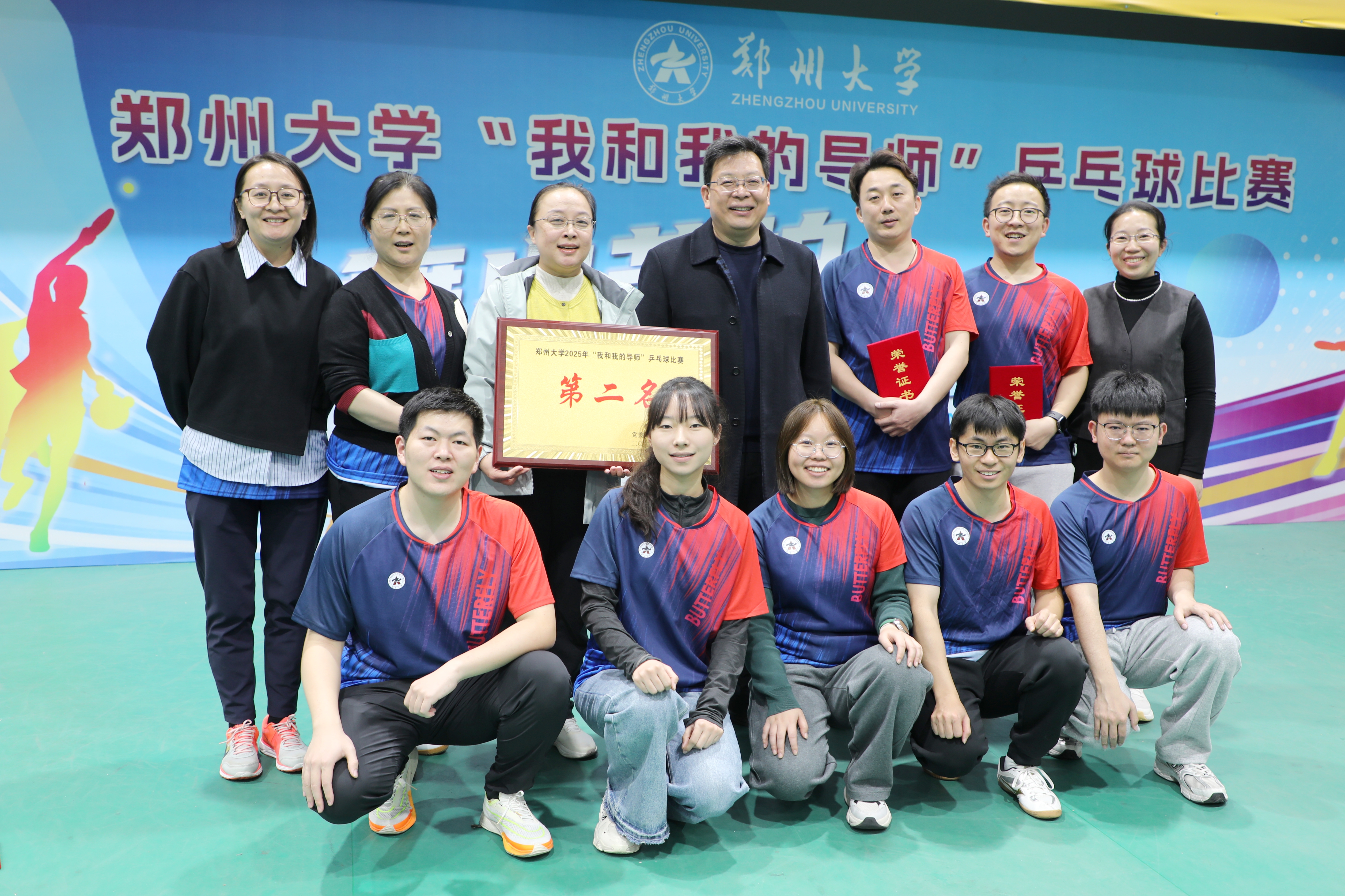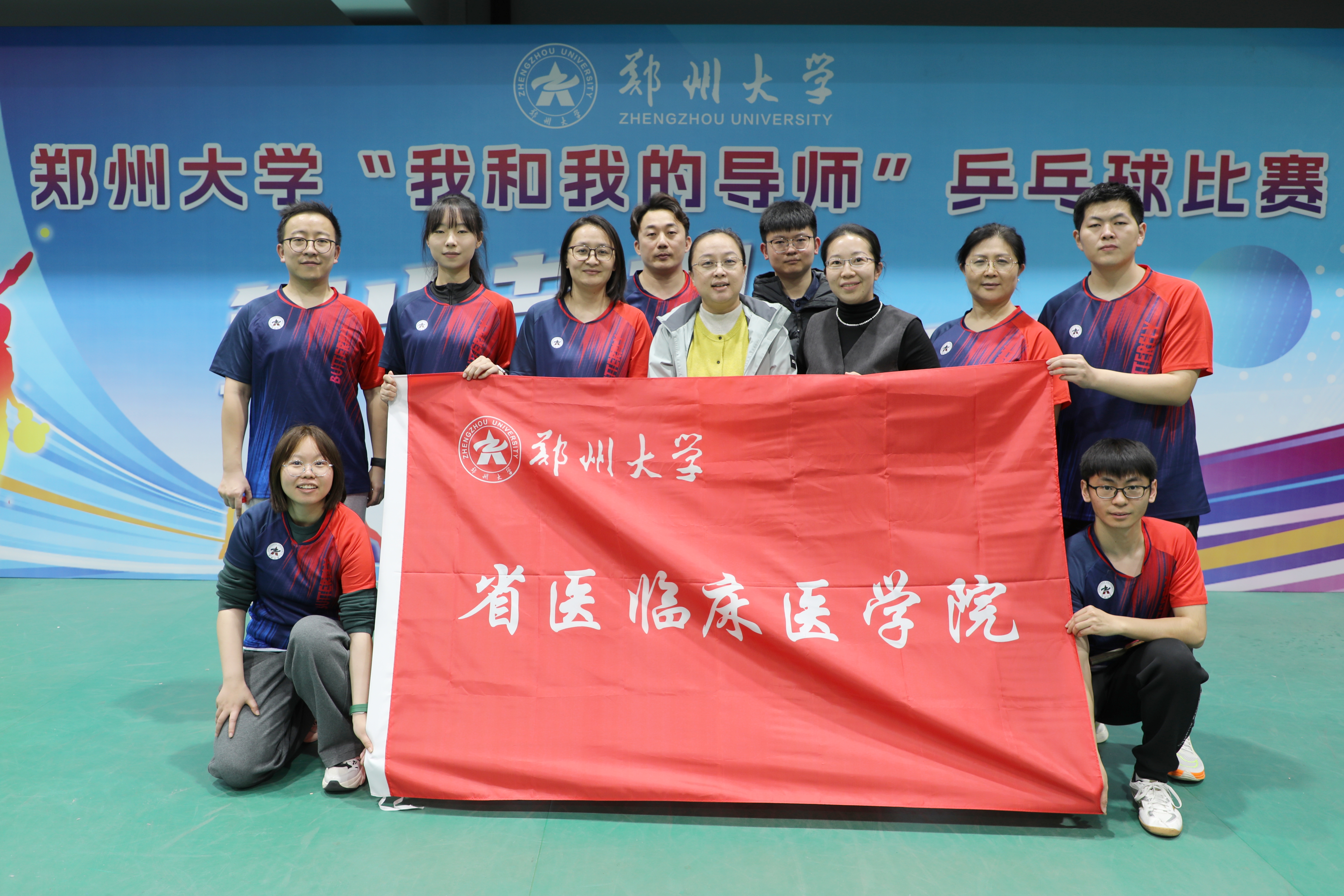 1122日,郑州大学主校区南体育馆内掌声雷动、喝彩不断,郑州大学2025年“我和我的导师”乒乓球比赛总决赛在此圆满落幕。经过近八个月的激烈角逐,郑州大学省医临床医学院师生代表队在学院副书记王乔的带领下,凭借精湛技艺与默契配合一路过关斩将,最终荣获校级团体第2名,创下学院在研究生乒乓球赛事中的历史最好成绩。