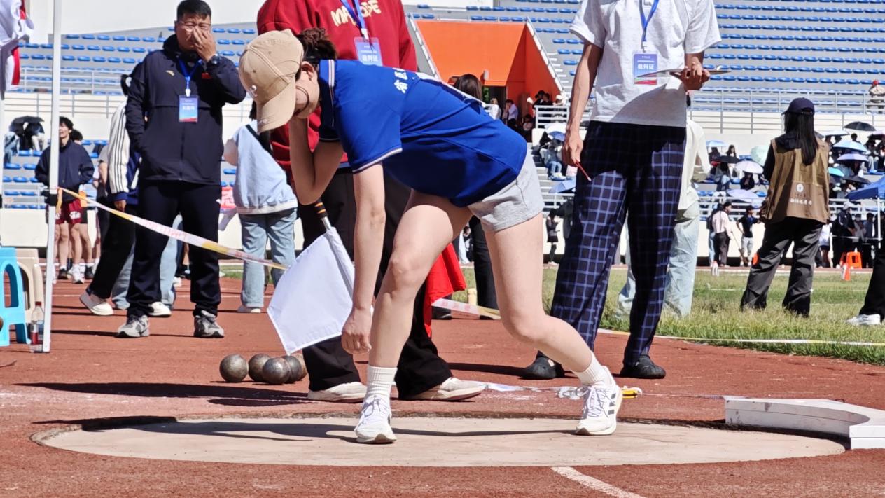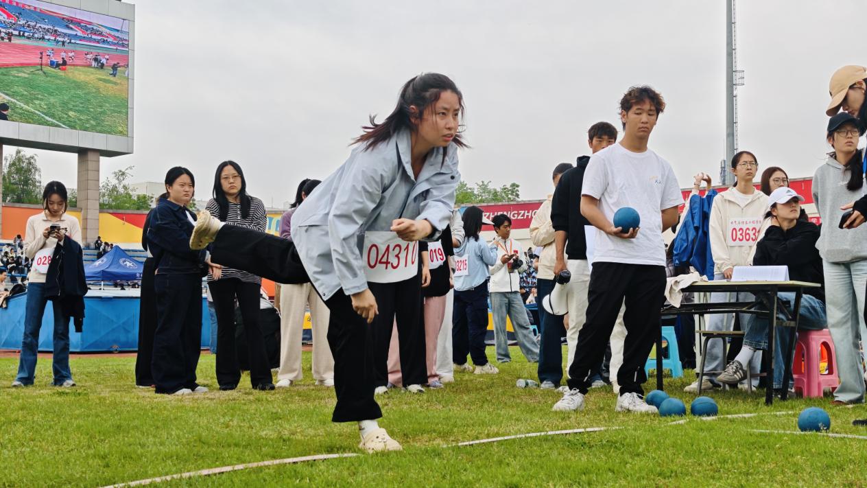 田赛赛场同样捷报频传,24级研究生高美倩同学在女子铅球项目中奋力一掷,划出优美弧线,尽展力量与技巧之美,夺得季军。