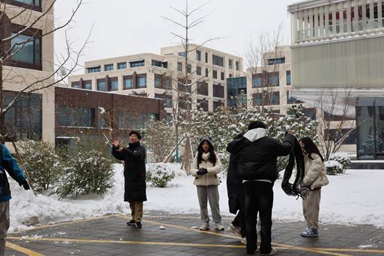 雪花为媒,情谊升温。这场不期而遇的2026年初雪,为此次交流增添了别样浪漫。对于少见雪景的台湾师生而言,漫天白雪是意外之喜,他们难掩雀跃,座谈间隙与郑大师生一同走进雪地,搓雪球、打雪仗,欢声笑语驱散了冬日寒凉,更成为联结两岸师生情谊的温暖纽带,让彼此距离在轻松互动中悄然拉近。