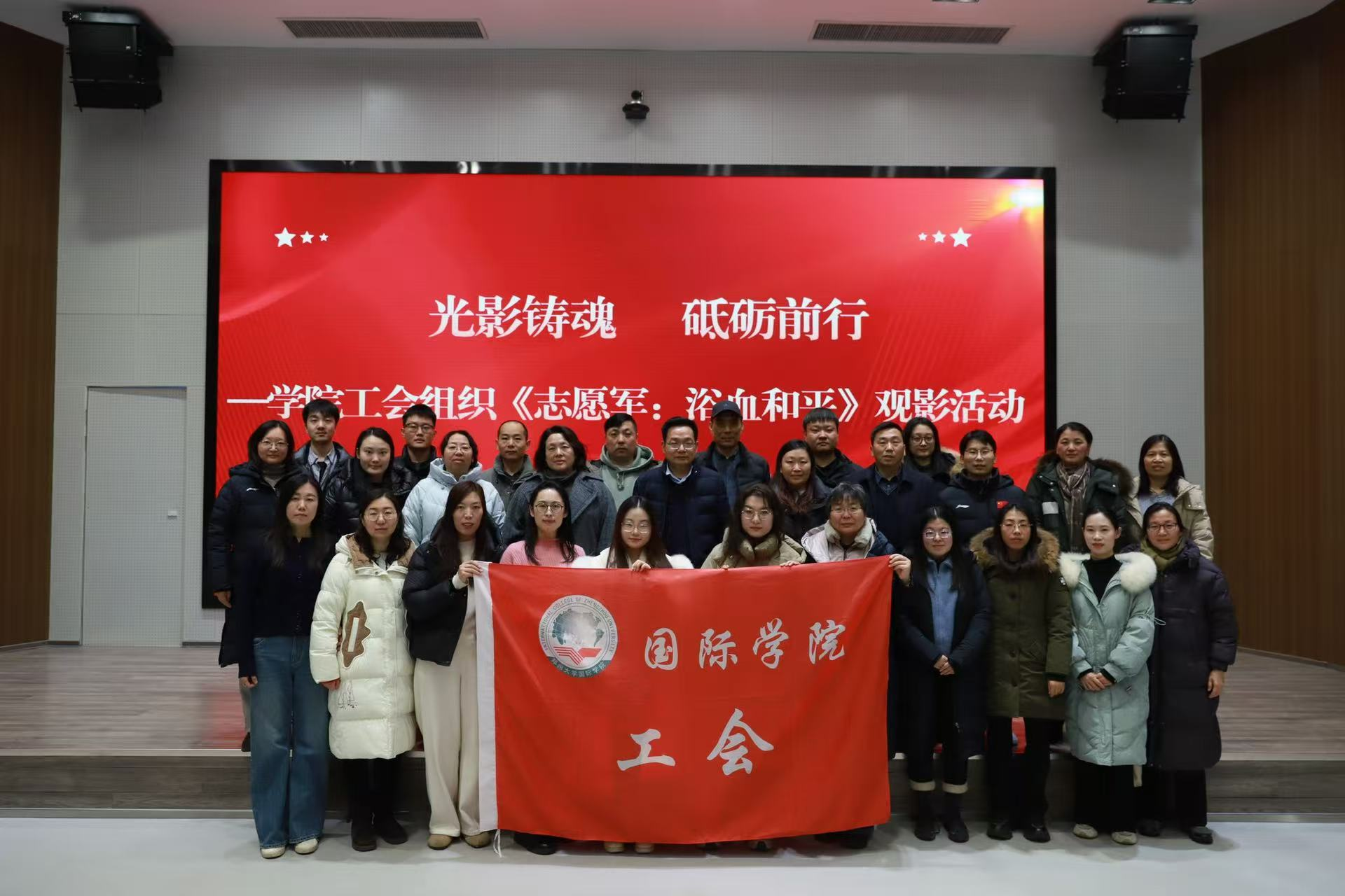 为弘扬爱国主义精神,激发教职工的爱国情怀与集体荣誉感,学院工会于1月22日下午组织全体教职工开展“光影铸魂 砥砺前行”观影活动,共同观看影片《志愿军:浴血和平》。
