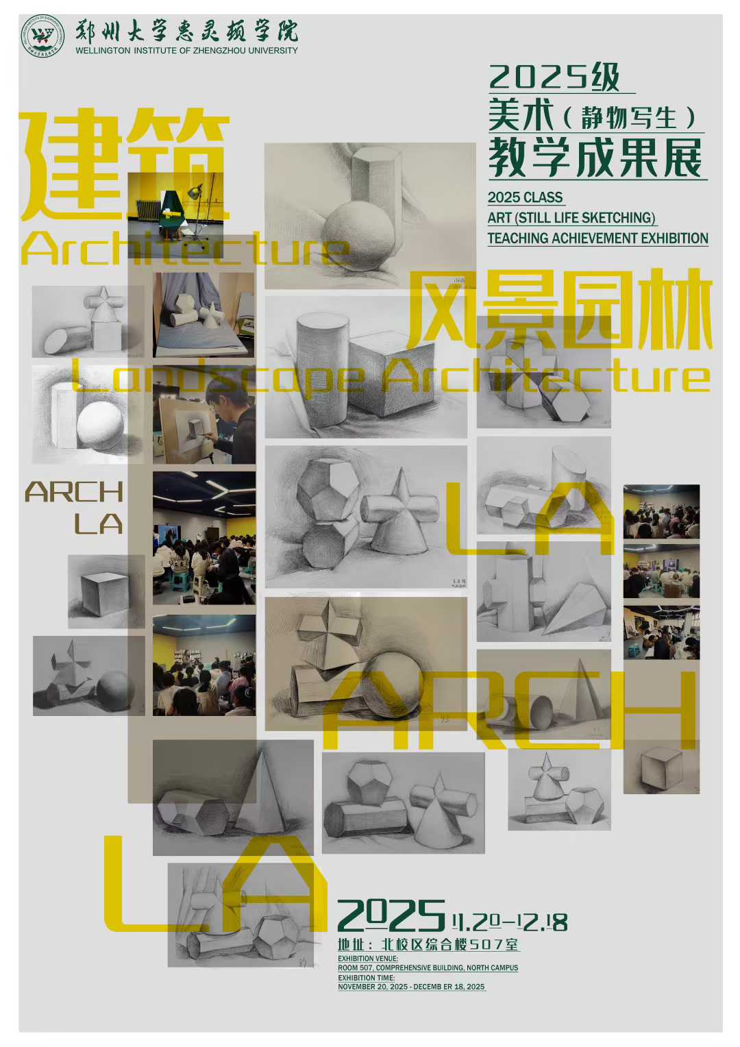 为集中展示美术教学成效,搭建师生教学交流与成果共享平台,11月20日,我院2025级建筑学、风景园林两个专业的美术教学成果展在北校区综合楼507展厅正式拉开帷幕。本次展览将持续至12月18日,为期近一个月的展示周期,让更多师生有机会近距离感受艺术与专业融合的教学魅力。