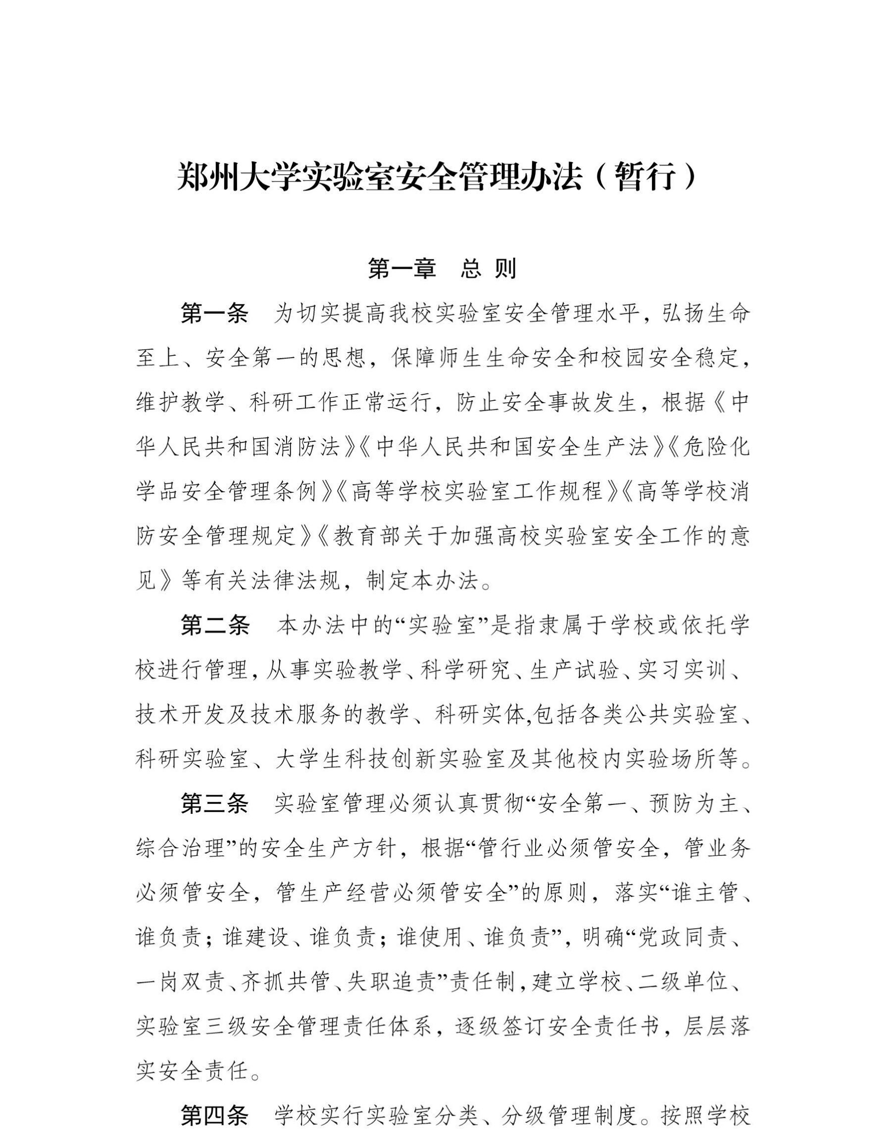 郑州大学实验室安全管理办法(暂行)