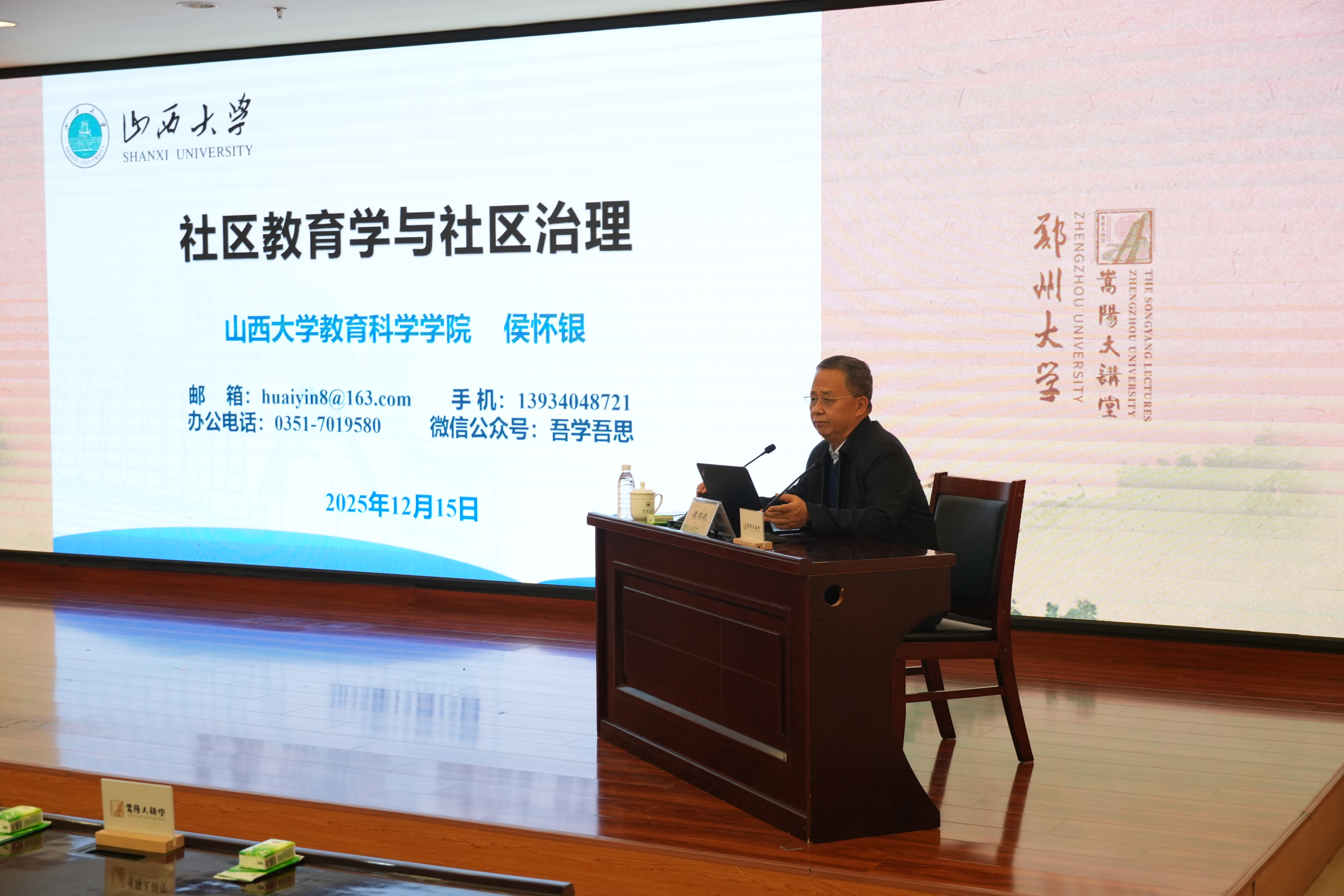 12月15日,郑州大学“嵩阳大讲堂”第三十讲——侯怀银教授报告会在主校区举行。相关部门和学院师生代表260余人参加活动。