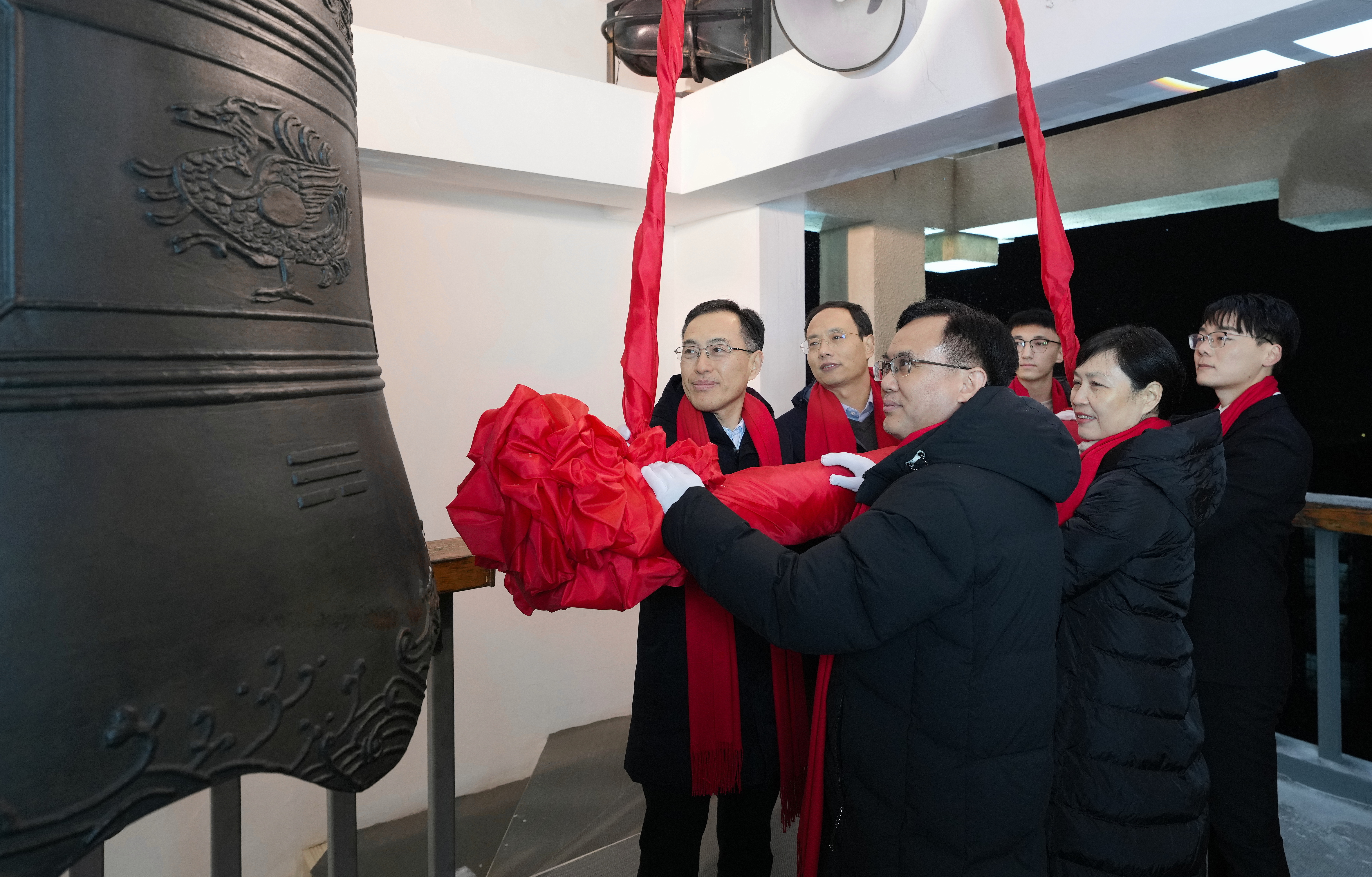 校领导李成伟、臧双全与师生员工代表敲响新年钟声