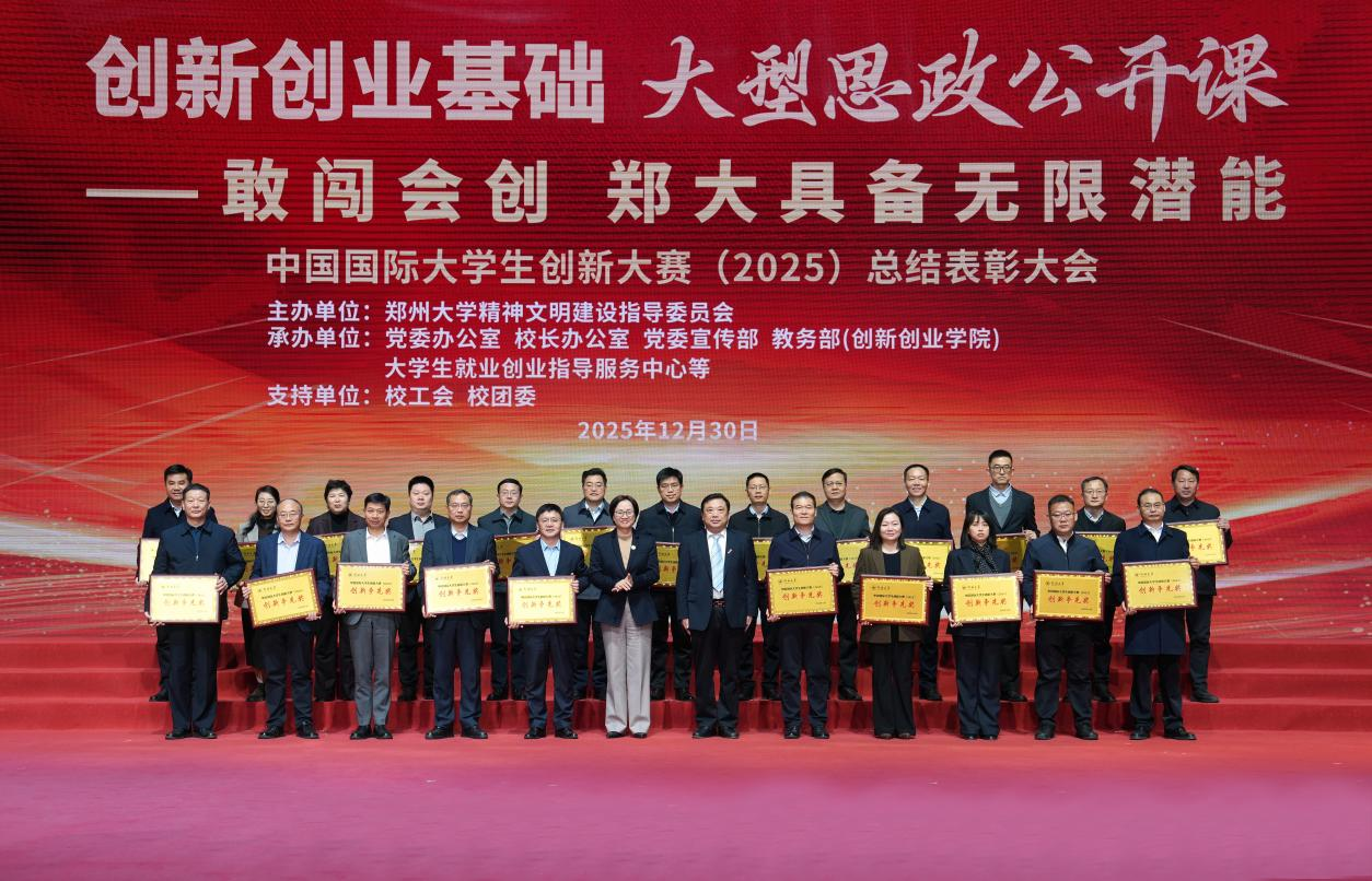 敢闯会创,再谱新篇。12月30日,学校举办中国国际大学生创新大赛(2025)总结表彰大会暨“敢闯会创——郑大具备无限潜能”大型思政公开课。课程突破传统表彰模式,以“翻转课堂”形式,总结过去一年的奋斗历程,凝聚起全校师生敢闯敢创的共识。师生代表分享了勇闯科研“无人区”、投身产业报国、协同攻坚办赛的感人故事。大会表彰了先进集体与个人,并正式启动2026年大赛备赛工作。