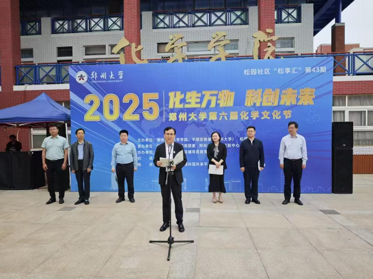 为引导青年学子厚植科学精神、投身科研创新,在第二十五个全国科技活动周和第九个全国科技工作者日到来之际,5月25日,郑州大学第六届化学文化节暨松园社区“松享汇”第43期科普活动在主校区开幕。郑州大学学术副校长、化学学院院长臧双全,校党委学生工作部、学生处,化学学院,校团委负责同志,郑州市桐淮小学、郑州大学实验小学的师生和家长代表,以及松园社区、化学学院师生代表等300余人参加开幕式。开幕式由化学学院负责同志主持。