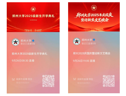 欢迎广大师生、校友和家长届时收看,共同见证郑州大学2025级新生的闪耀时刻。