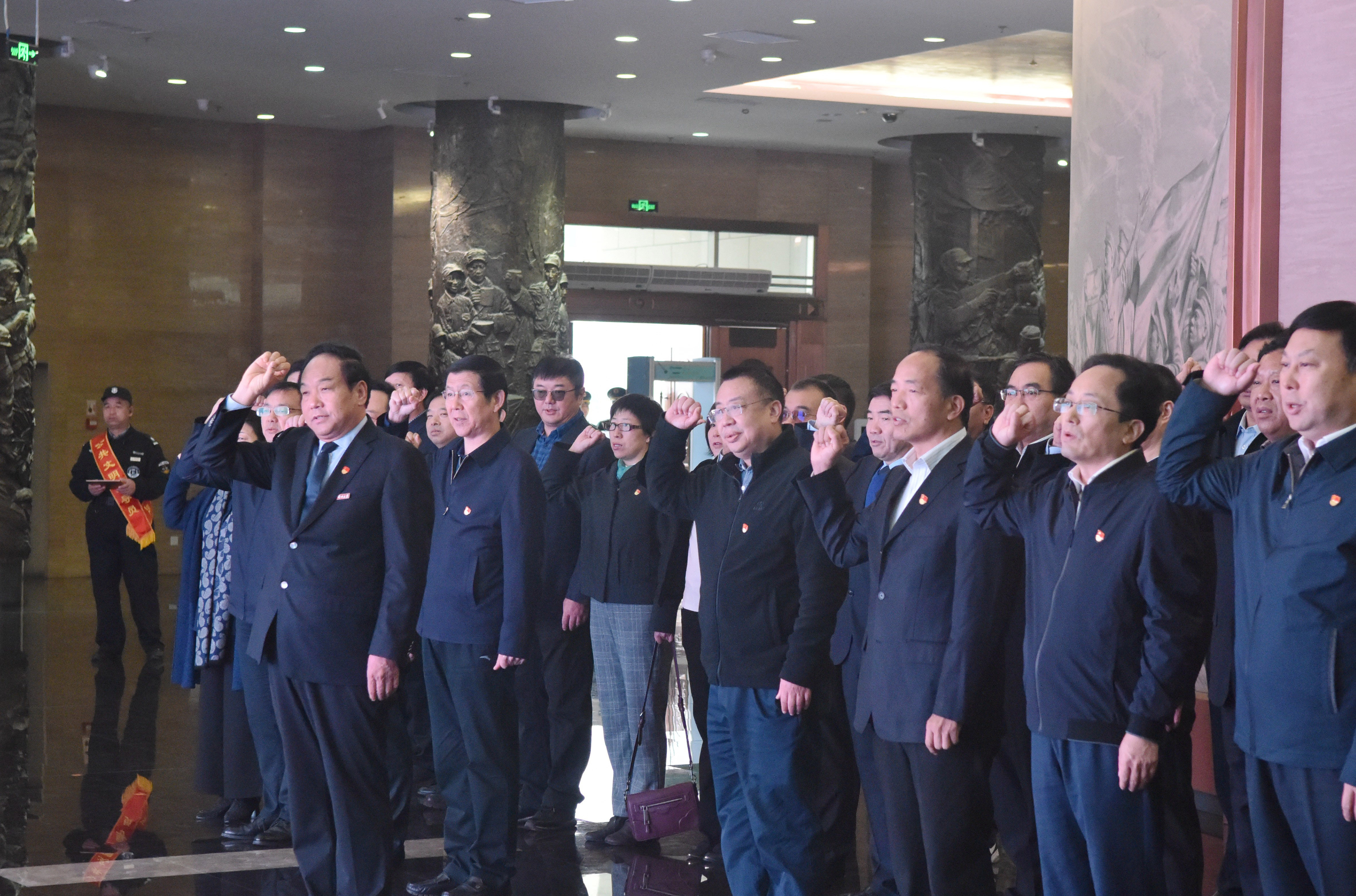 上午11时,大家来到中原英烈纪念馆参观“不忘初心、牢记使命”主题教育展。在一楼展厅,大家重温入党誓词,牛书成领誓,全体党员面对党旗,庄严宣誓,并观看了主题教育宣传片。随后大家来到二楼展厅,参观了以“载梦启航”“寻梦浴血”“为梦奠基”“追梦扬帆”“筑梦新时代”为主要内容的主题教育展,回顾了中国共产党团结带领河南人民进行革命斗争、开创伟大事业、谱写壮丽篇章的光辉历程。