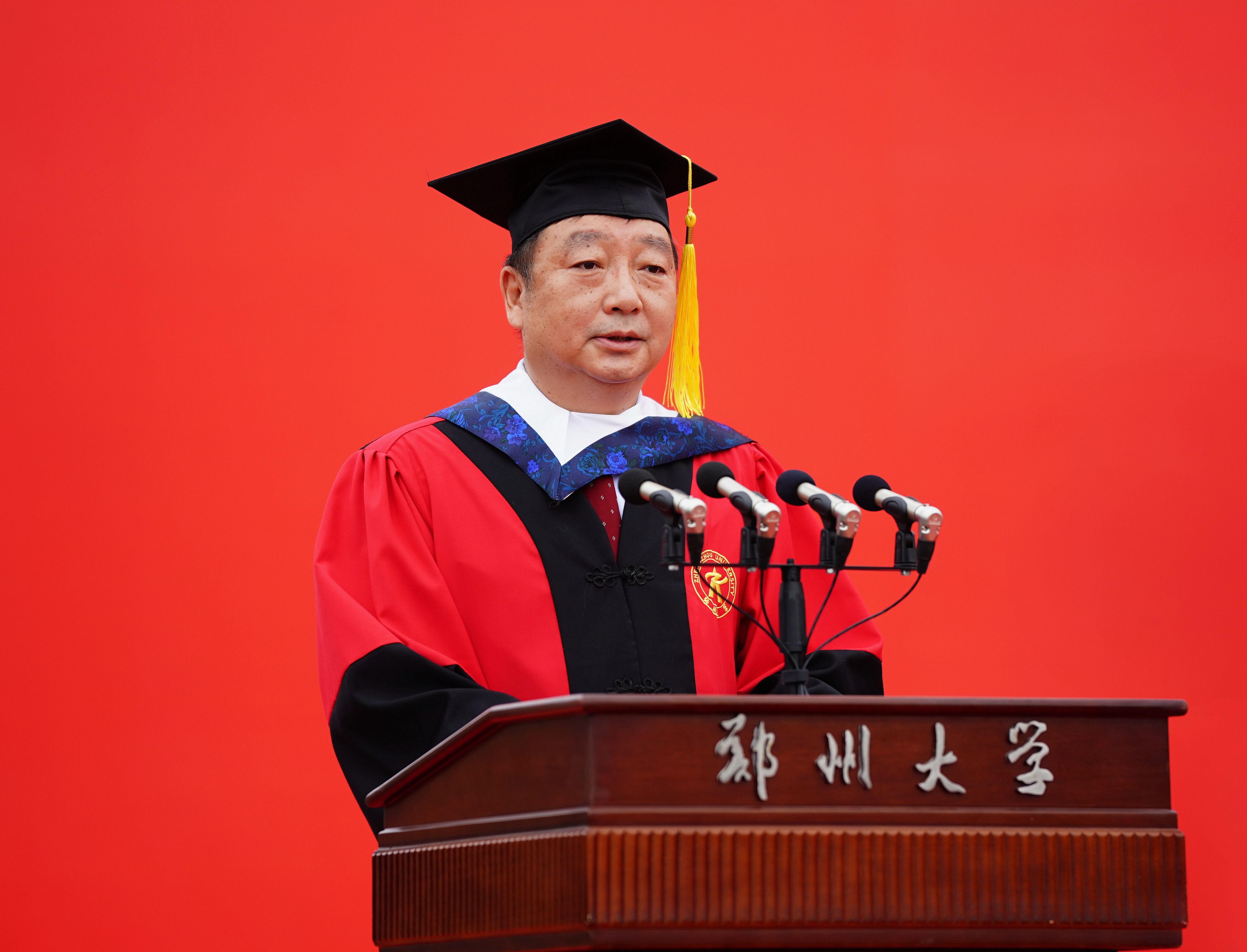他寄语全体毕业生,面对新生活,要脚踏实地,只要坚持脚踏实地的人生态度,就会找到光明的事业起点;面对新生活,要拥抱社会,走向社会,要做学习者,更要当好主人,积极拥抱社会;面对新生活,要坚定信心,“我是郑大的”意味着你在郑大获取的专业知识、专业技能与思维方式,更意味着信心。
