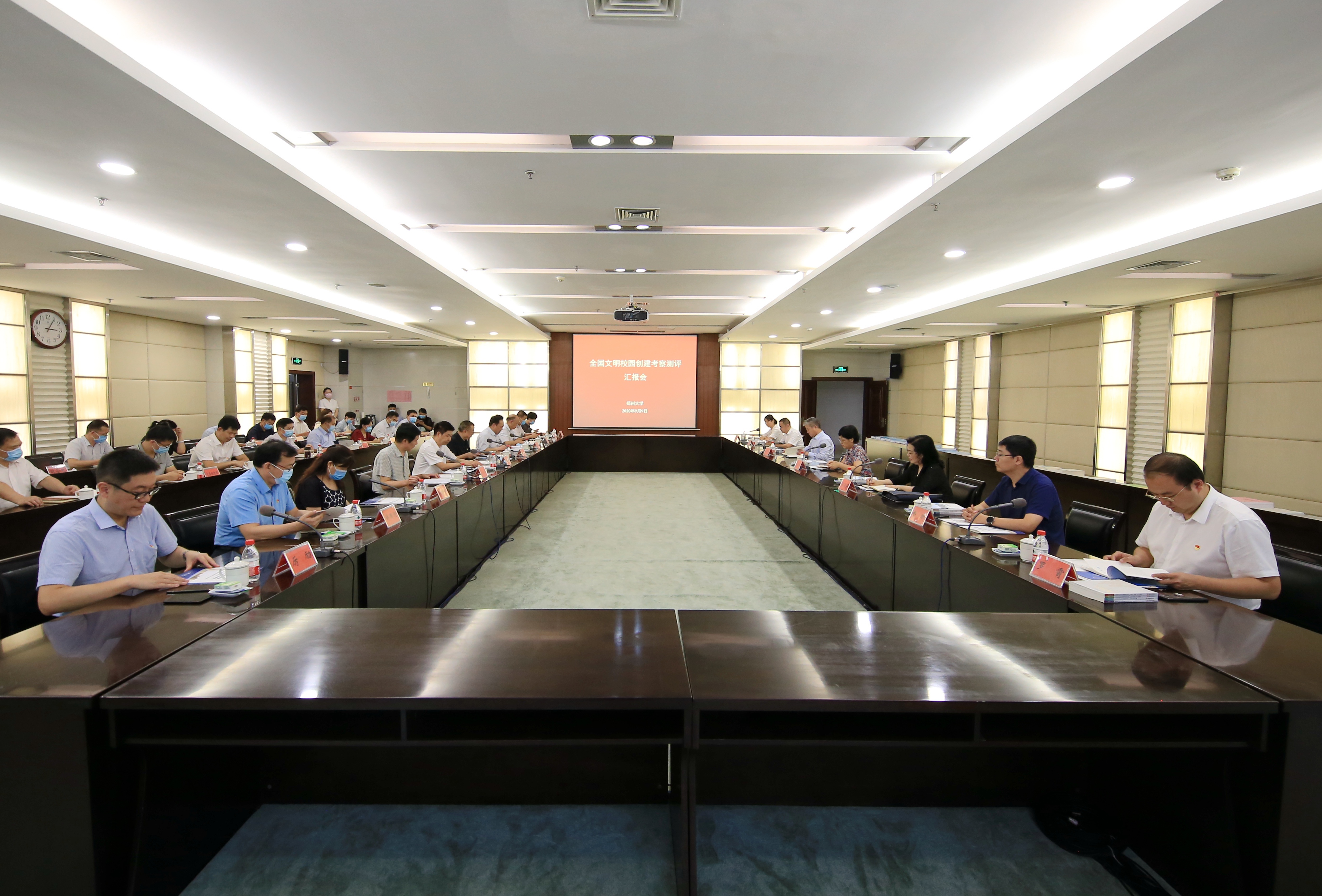 校党委副书记李兴成从思想道德建设、领导班子建设、师德师风建设、校园文化建设、校园环境建设、阵地建设管理、疫情防控工作等七个方面汇报了学校全国文明校园创建工作。他说,学校坚持以习近平新时代中国特色社会主义思想为指引,强化党建引领,加强和改进大学生思想政治教育,建立健全师德师风工作机制,打造校园特色文化品牌,推进校园管理提质增效,完善治理体系和治理能力,巩固和发展全国文明校园创建成果,为推进学校一流大学建设提供坚强思想保证和强大精神动力。