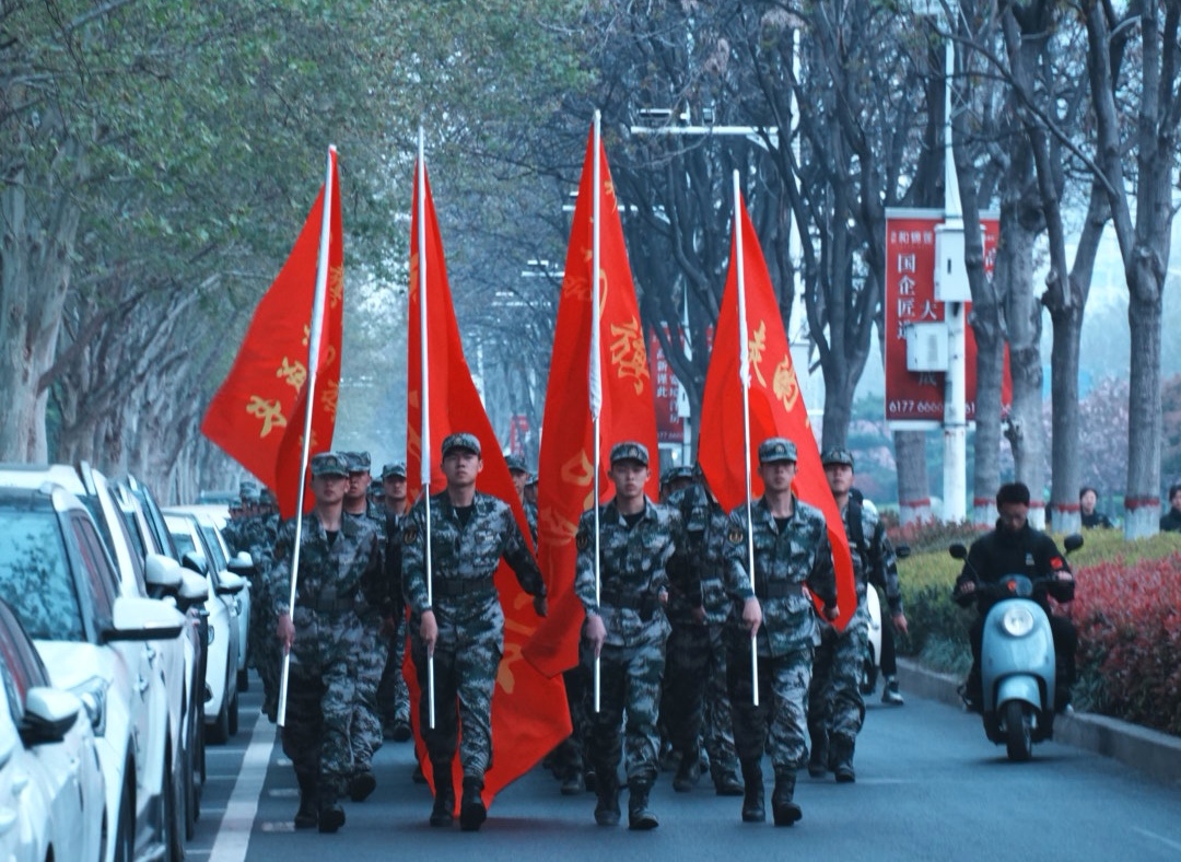 早晨6:00,三个校区的国旗护卫队队员身着迷彩服,精神抖擞——这支传承二十余载的钢铁队伍,肩负着护卫国旗的神圣使命,承载着郑大学子的敬意与追思,高举旗帜,列队整齐,再次向丹青路方向前进。一路上,同学们用歌声缅怀先烈,用步履坚定信仰,展现出郑大学子能吃苦、肯担当的优秀品质,漫长征途成为熔铸家国情怀的移动思政课堂。