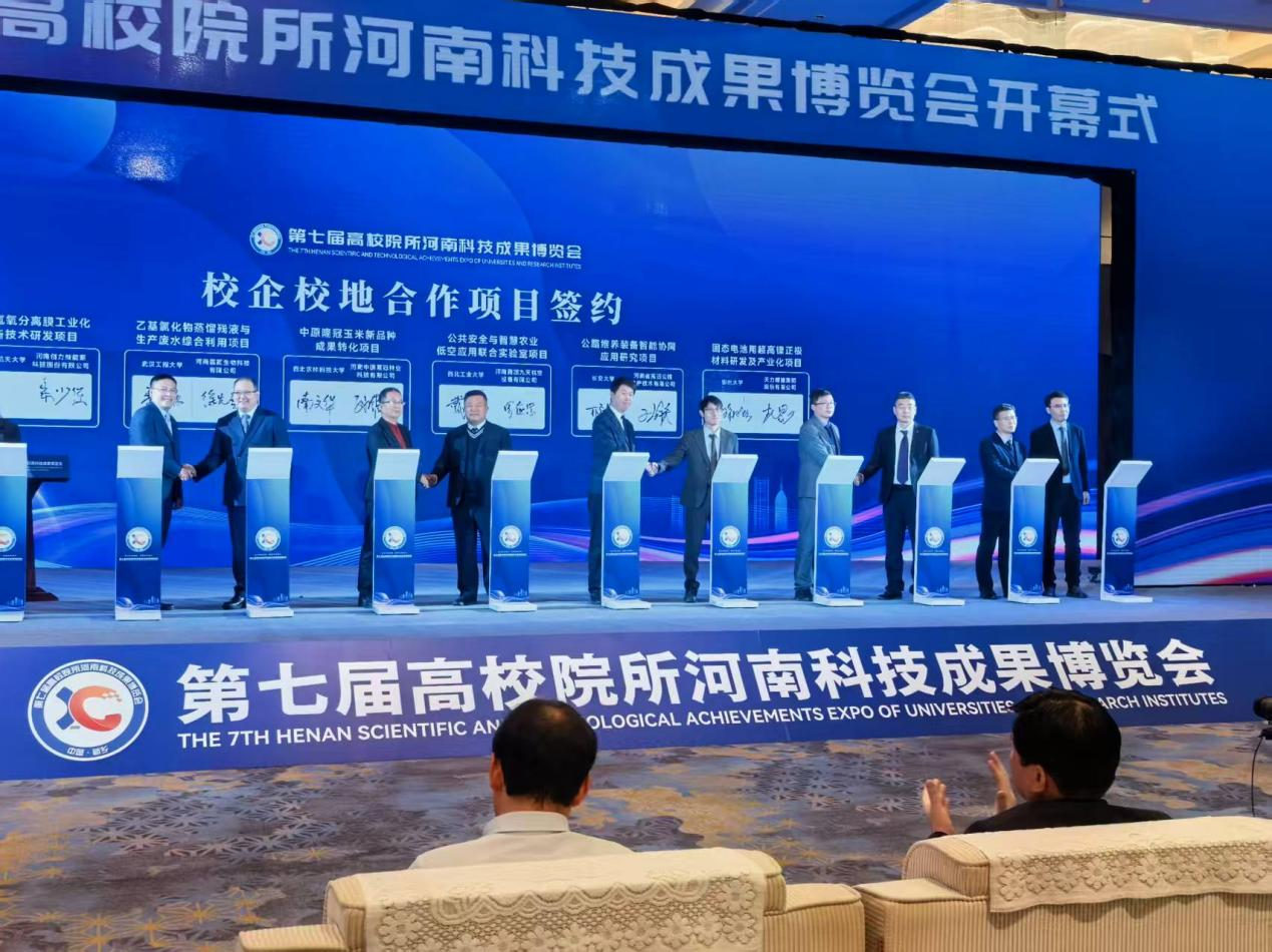 2025年11月23日,第七届高校院所河南科技成果博览会(以下简称“高博会”)在新乡隆重开幕。本届高博会致力打造科技创新与成果转化的高水平对接平台,吸引了140余名来自高校院所的科研处长、成果转化负责人及专家学者,以及110余家高校院所、知名企业与投融资机构齐聚盛会。郑州大学副校长刘春太、大学科技园建设管理中心张文良主任、我院孙钢灿院长、崔鑫炜教授一行应邀出席。