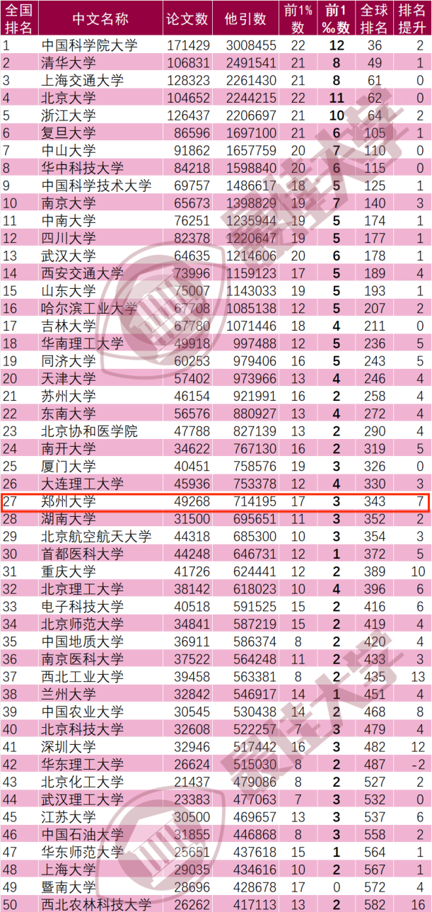 1月12日,科睿唯安公布了最新ESI排名。郑州大学再次取得突破,数学学科进入全球前1%,成为学校第17个全球前1%学科。学校整体ESI全球排名343位,较上次提升7位,位居国内高校27位,高被引论文达到1142篇,各项ESI数据稳步上升。