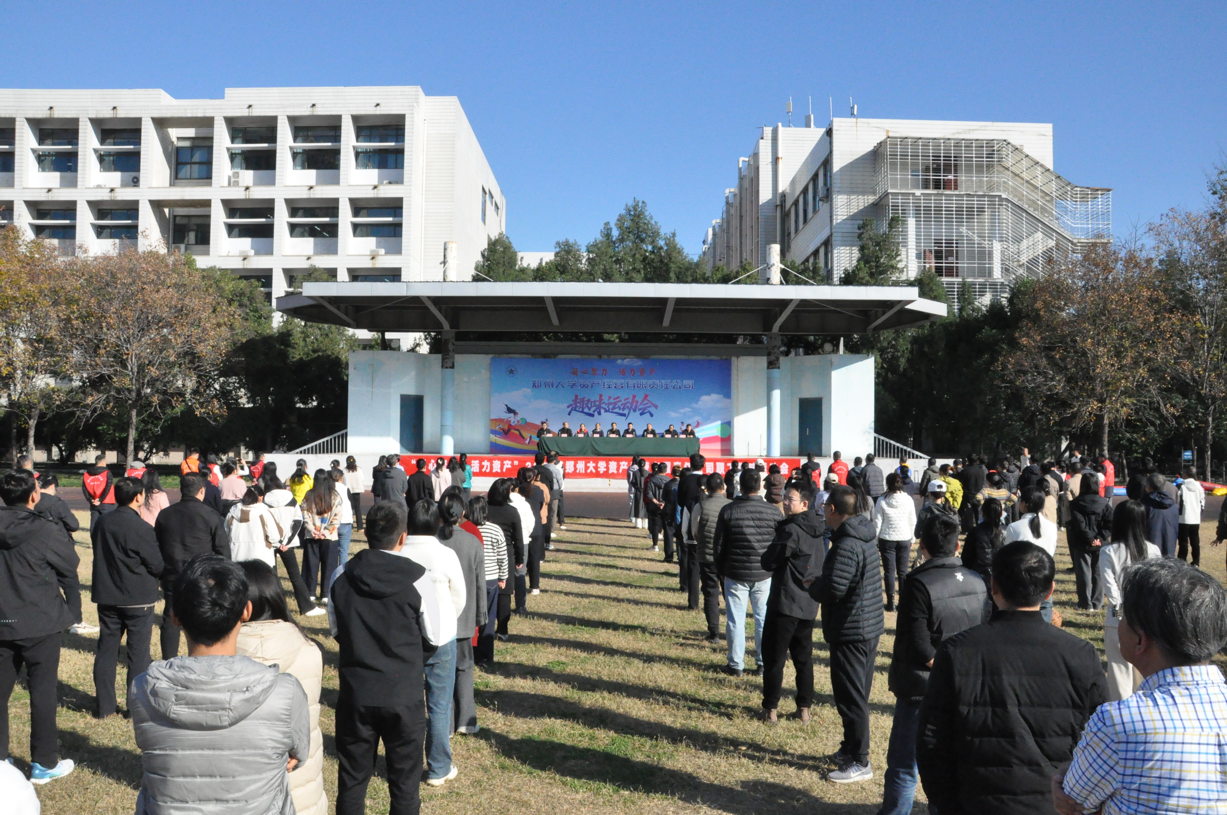 为丰富职工文化生活,增强团队凝聚力与向心力,展现公司职工积极向上的精神风貌,2025年11月21日,资产公司“凝心聚力,活力资产”2025年职工趣味运动会在北校区体育场隆重举行。来自公司总部和各所属企业的200余名干部职工以饱满的热情、昂扬的斗志投身赛场,共同谱写了一曲活力与激情的乐章。公司全体党政班子领导出席了趣味运动会,运动会由公司副总经理兼工会主席宋会涛主持。