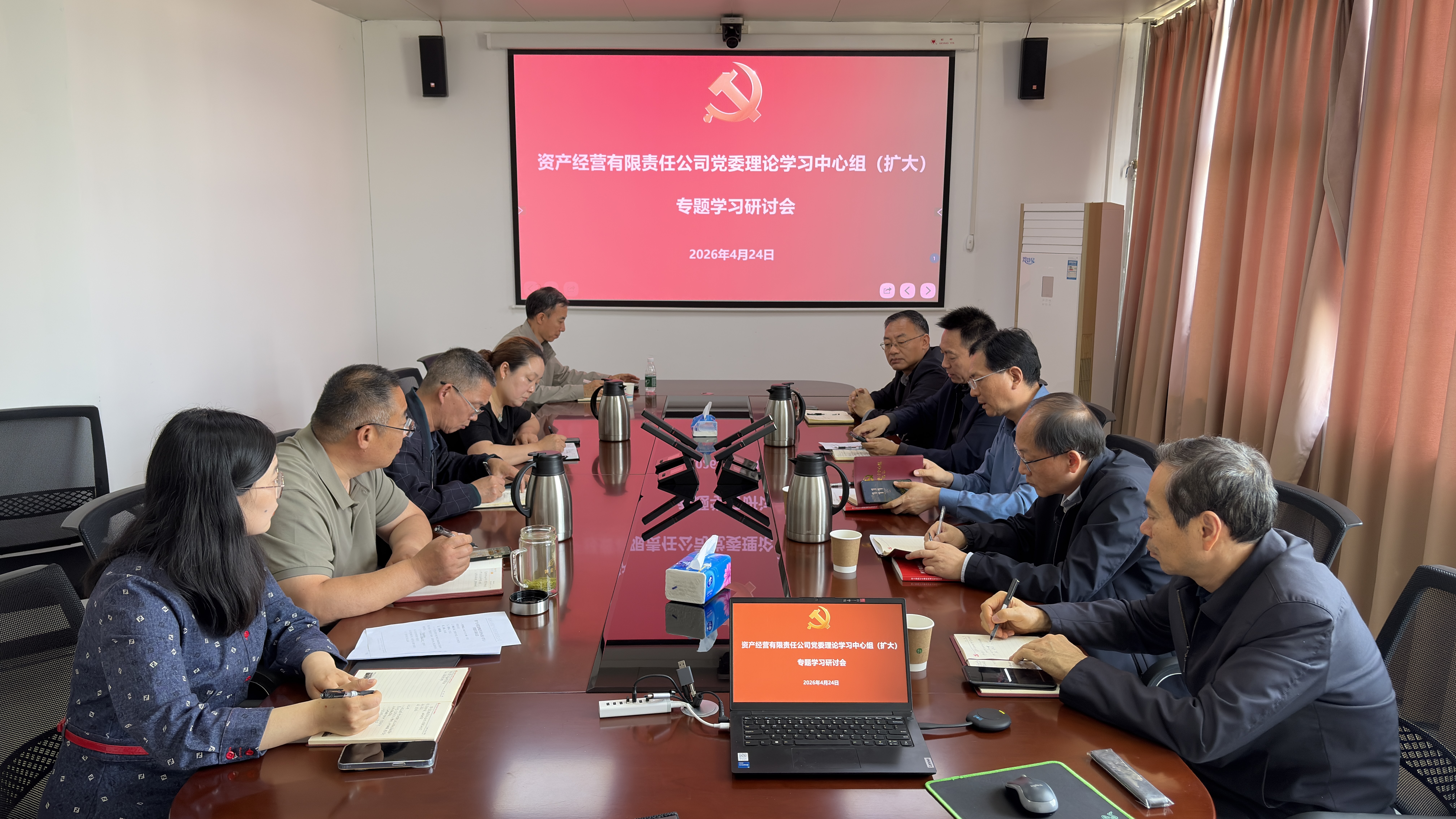 4月24日,资产公司党委召开理论学习中心组(扩大)学习研讨会,围绕“政绩为谁而树”主题进行专题学习研讨,党委班子成员、机关党支部全体党员、综合党支部党员代表参加会议。会议由党委书记王宏志主持。