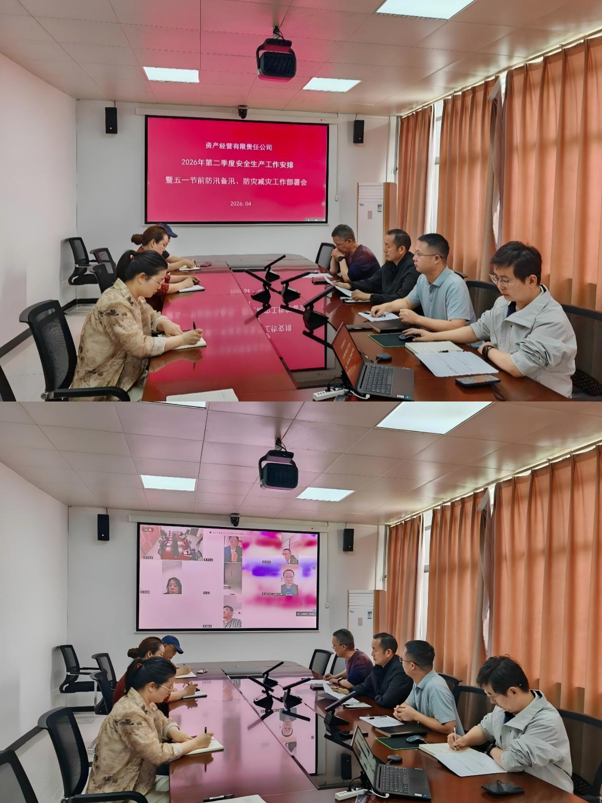 为全面落实全省防汛抗旱专项会议工作部署,从严抓实公司全域安全管控,2026年4月28日上午,资产公司召开二季度安全生产工作暨“五一”节前防汛备汛、防灾减灾专题会议,深入学习贯彻上级会议精神,总结一季度安全生产工作,研判二季度风险,部署下一阶段安全生产重点工作。公司党委委员、副总经理宋会涛参会并部署专项工作,企管部朱小青主持会议,各所属企业、部门安全负责人及安全管理人员通过现场或线上的方式参加会议。