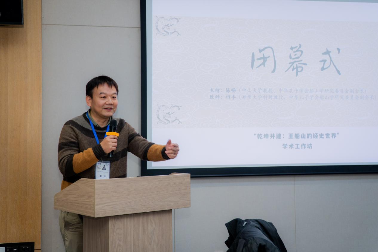 会上,与会专家学者们讨论热烈,学术氛围浓厚。王船山作为道学殿军,精研四书;又返本六经,别开生面;亦浸润史学,淹通广博。船山之宇宙本体归本大易,人伦功夫以四书为纲,政治运思则深得于史。古人云:“刚日读经,柔日读史”,故“乾坤并建”既是船山易学宗旨,亦可视作其学问关节所在。此次会议的相关发言及论文,相信会进一步推进船山学以及经史之学的相关研究。最后,会议在田丰教授的总结和掌声中圆满结束。