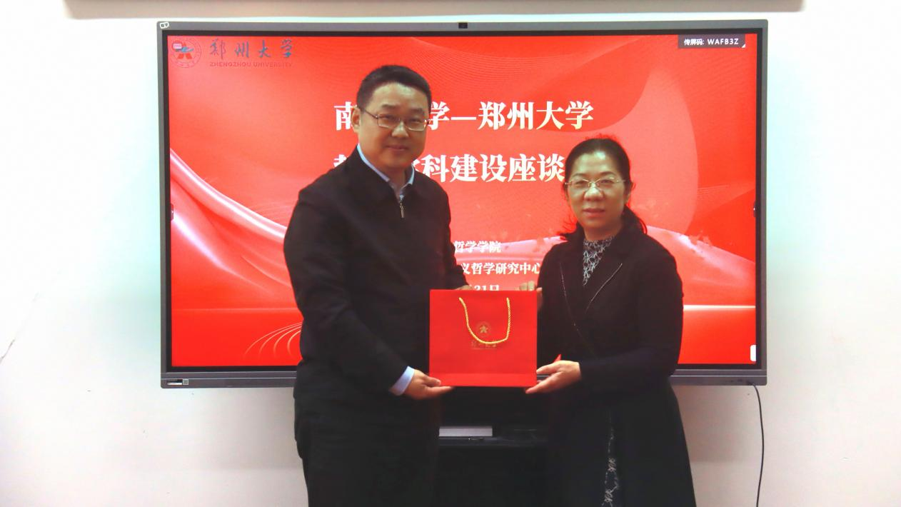 王文成代表哲学学院系统介绍了郑州大学哲学学科的发展历程,以及在学科规模、科学研究、人才培养等方面的建设现状、成效与不足。他表示,郑州大学哲学学科的发展既要服务于学校“双一流”建设,也要切实契合民族国家战略需求。南京大学哲学学院学科底蕴深厚,师资力量雄厚,在学术研究、人才培养等领域成果斐然,其学术成果与教学模式具有引领示范效应,这为郑州大学哲学学院的发展提供了重要的借鉴。他期望两院能够以此次交流为契机,进一步深化了解、增进情谊,期待南京大学哲学学院能够给予更多指导。