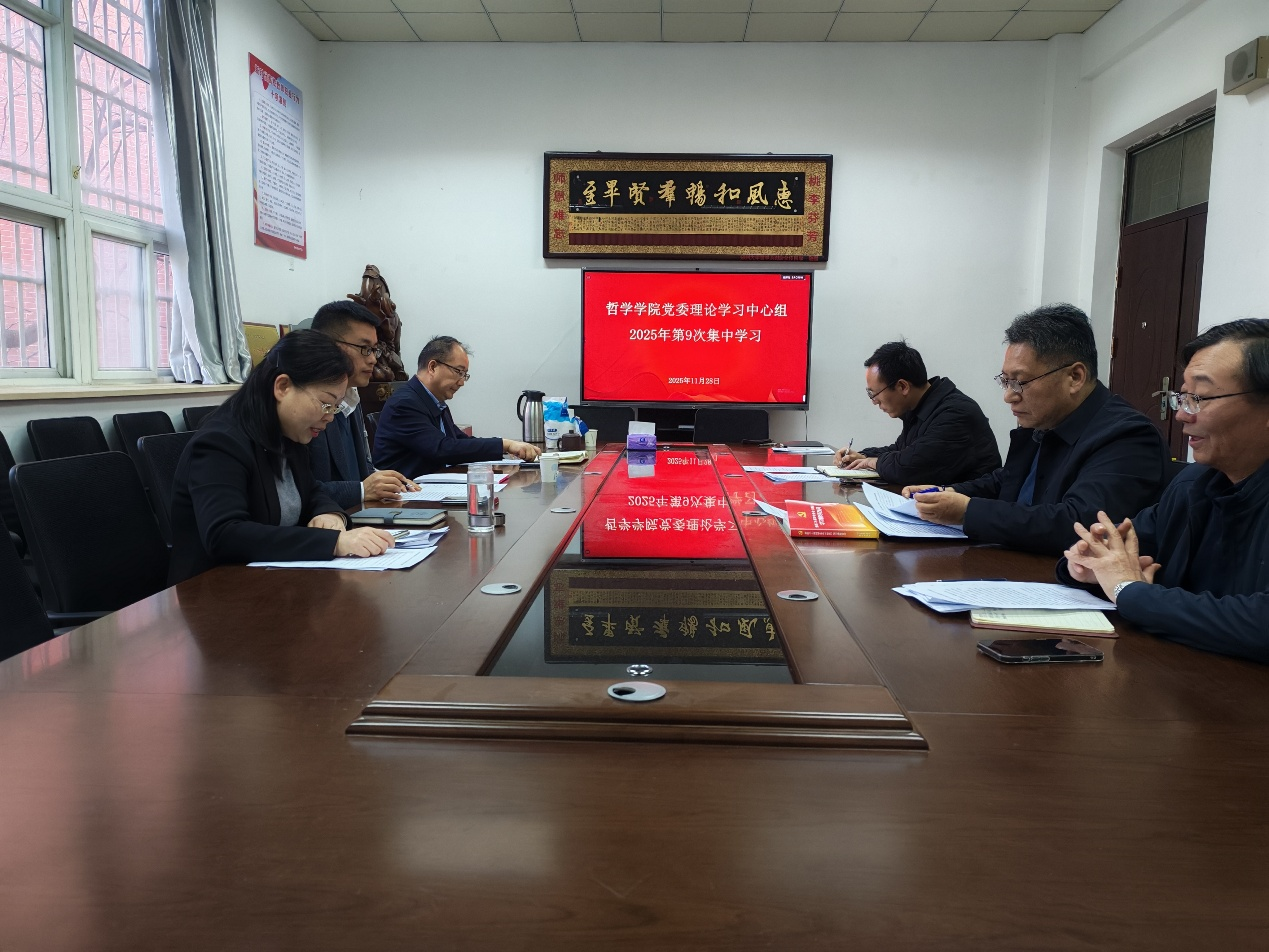 11月28日下午,郑州大学哲学学院党委理论学习中心组在会议室召开2025年度第9次集中学习,专题学习党的二十届四中全会精神及“十五五”规划建议相关文件,以思想铸魂推动学科创新与育人实践深度融合。校党委常委、组织部部长陈继超出席指导,学院党委书记王汇主持学习,学院党委理论学习中心组全体成员参会。