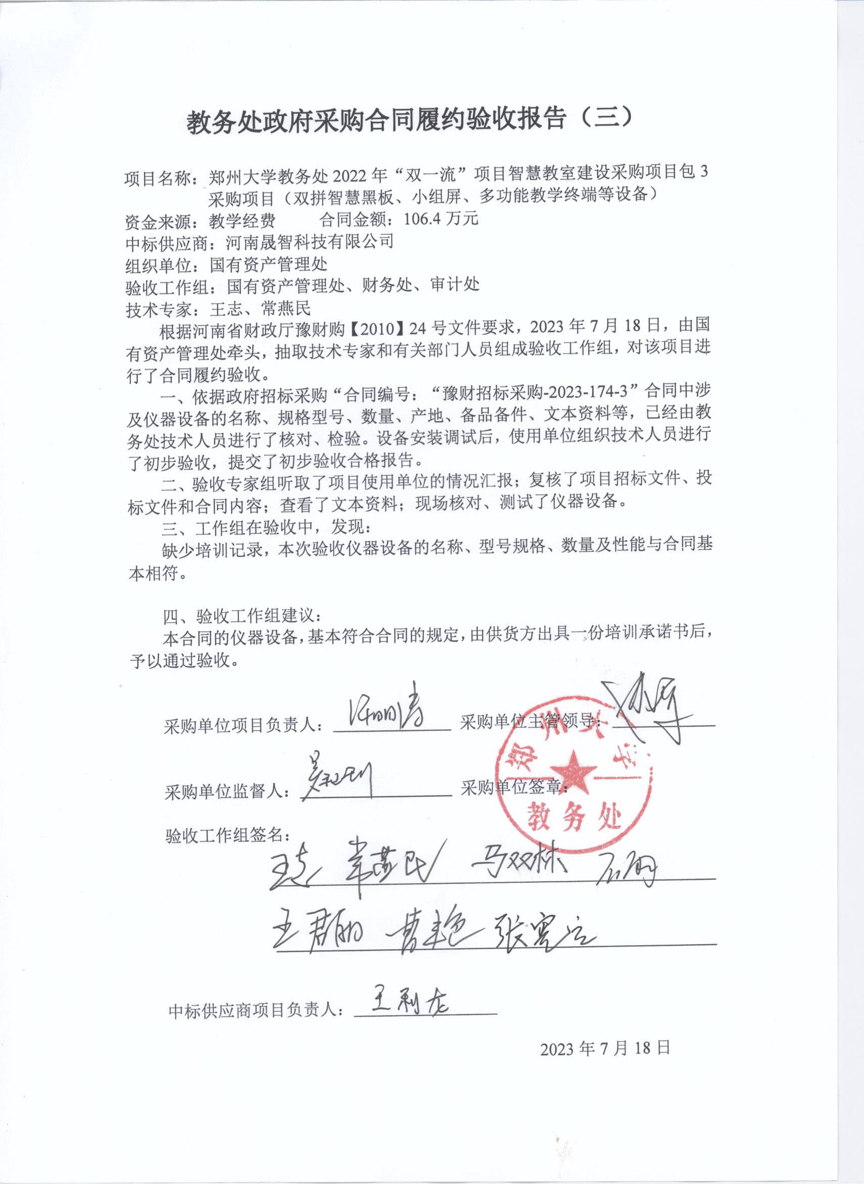 二、合同名称:郑州大学教务处2022年“双一流”项目智慧教室建设采购项目